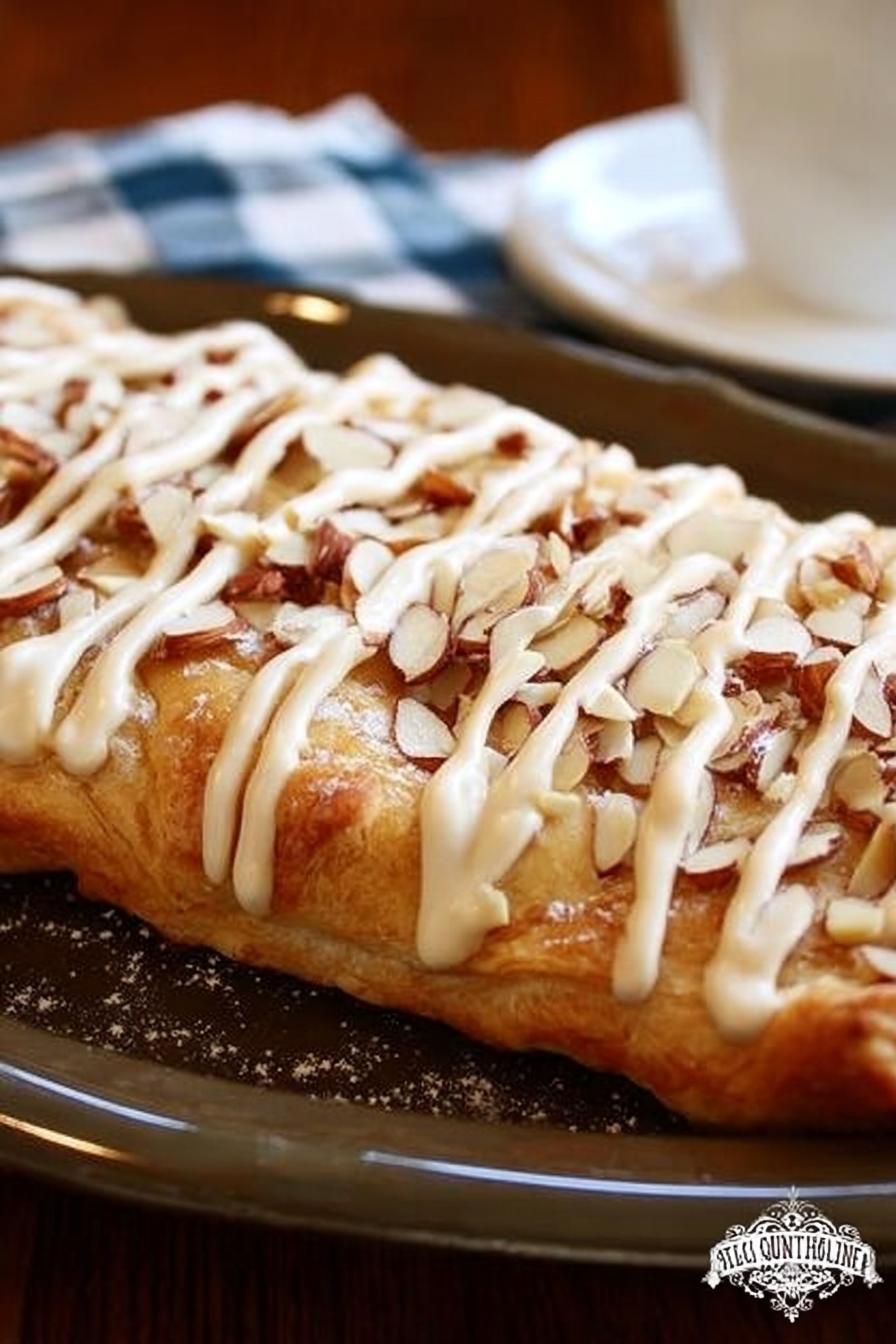 Unroll those crescent rectangles, skip triangles—they aren’t what you want here. Pinching seams tight keeps filling inside where it belongs. Cuts along edges spaced close, strip width thin enough to twist neatly. That lattice folding? Keeps cream cheese filling contained. Cinnamon replaces some vanilla in filling to deepen flavor, toss chopped pecans in place of almonds for crunch and less bitterness. Bake long enough to see edges turn golden, hear that quiet hiss slow, smell that buttery toasted nut aroma telling you it’s done. Icing gets a twist too—cream cheese instead of butter, richer, tangier, less slick. Timing’s a suggestion; watch, sniff, touch. Texture comes before clock. If dough jiggles, wait. Dominate cold cream cheese beating and folding to avoid lumps. Break old habits of smearing too thick—it’ll droop and wreck the weave. These tricks keep the layers flaky, the filling creamy, the nuts toasted but not burnt.