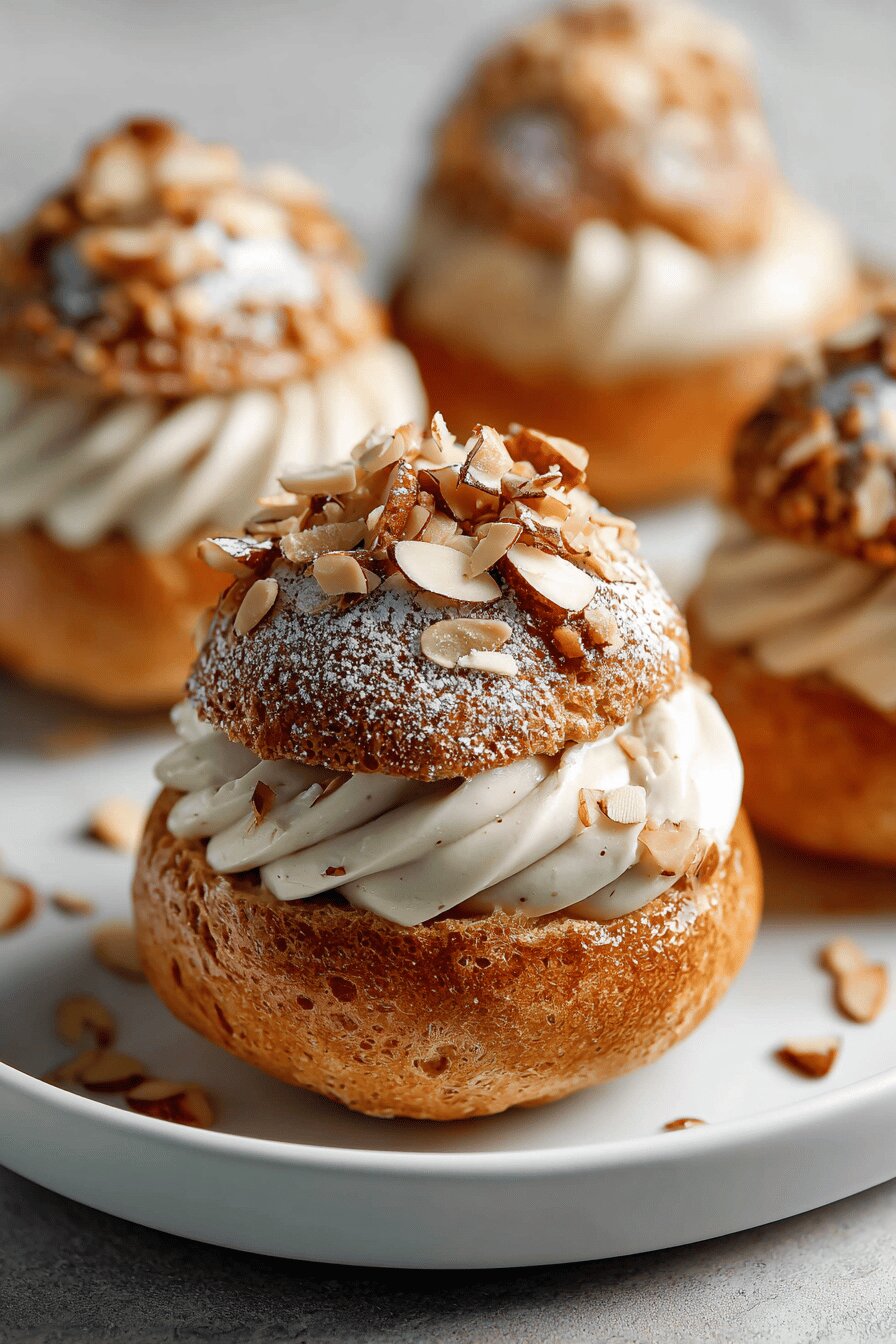 Ground almonds in craquelin help it hold shape and give that subtle nutty fragrance under caramelized sugar. Light brown sugar is a better choice here for nuances over white—use turbinado or muscovado if available. Pastry cream gets a hazelnut butter upgrade; if unavailable, almond or even peanut butter works but note different oiliness and flavor intensities. Heavy cream fold maintains lightness, don’t overmix or risk losing volume. Choux dough needs a good oven temp so they puff before crust forms. Freeze craquelin before slicing so it’s firm and cuts cleanly. Toast almonds until golden but not burnt; burnt nuts ruin the whole flavor. Slice choux cool or cream leaks.