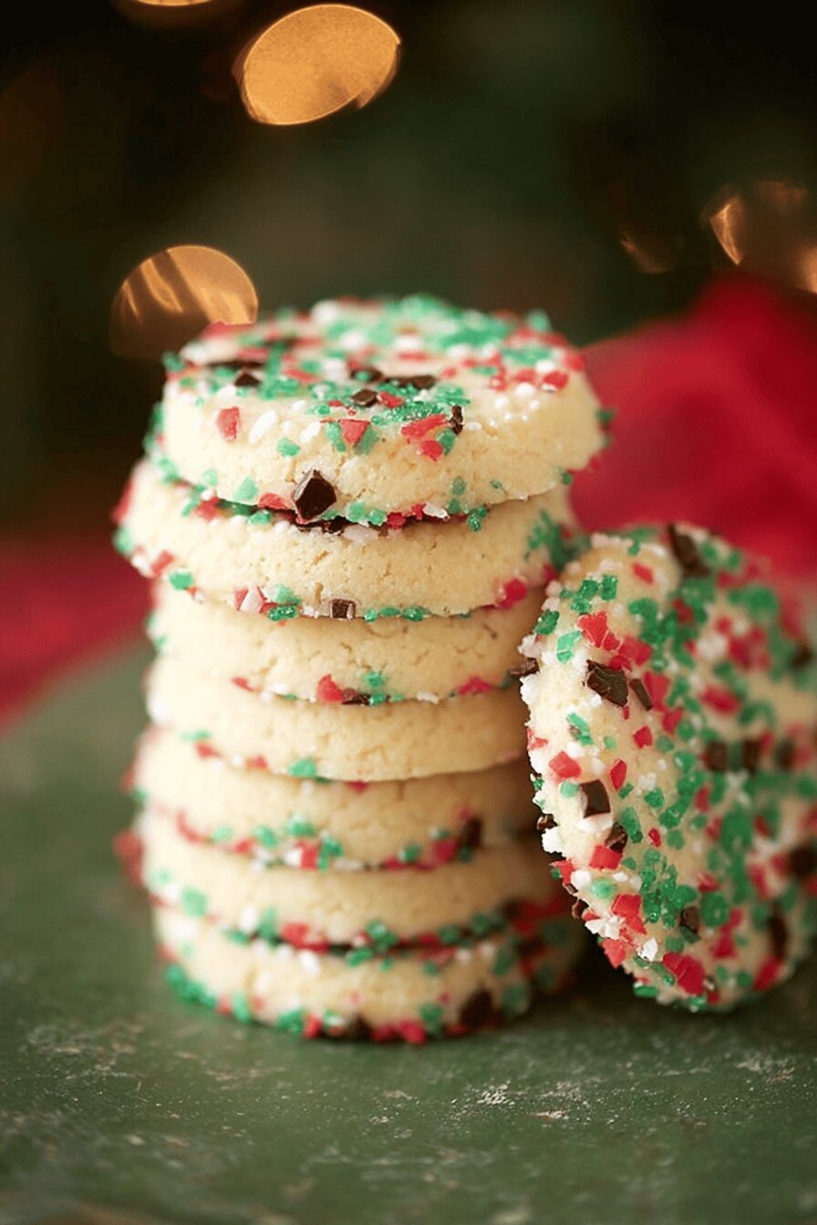 Butter and sugar creamed till soft. Egg, vanilla, almond extract folded in. Flour and salt added last. Dough divided, wrapped, and chilled till firm enough to slice. Logs rolled, coated with colorful nonpareils for crunch and surprise. Thin slices baked until edges show a faint gold glow. Cool on sheet before moving to rack. Store airtight at room temp or freeze. Substitutions and timing tips help avoid dry or crumbly batches.