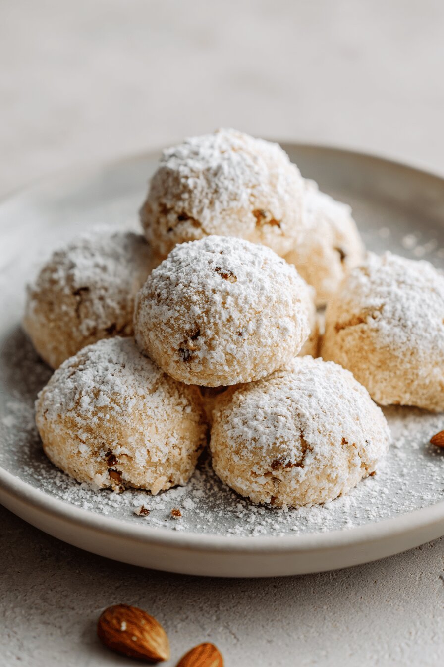 Butter, nuts, sugar. Simple but tricky chemistry. The dry flour balance shifts crispness, chew, and tenderness. Using oat flour adds a bit of chew and subtle sweetness, prevents dryness too fast. Hazelnuts take the place of almonds in part, offering deeper toasty flavor and crunch in every bite. Powdered sugar dusting not just decor; twice rolling locks in that snowy crust that cracks satisfyingly with the first bite. Temperature matters a lot here; underbake and they lack structure, overbake and they get dry and brown. Watch edges, jiggle in center. Timing is a guideline, your eyes and hands tell the story. Mixing—don’t overdo it or gluten kicks in, ruining delicate texture. This method lets you make dozens at once, then freeze half. Perfect treat to have on hand for guests or sudden sugar cravings.