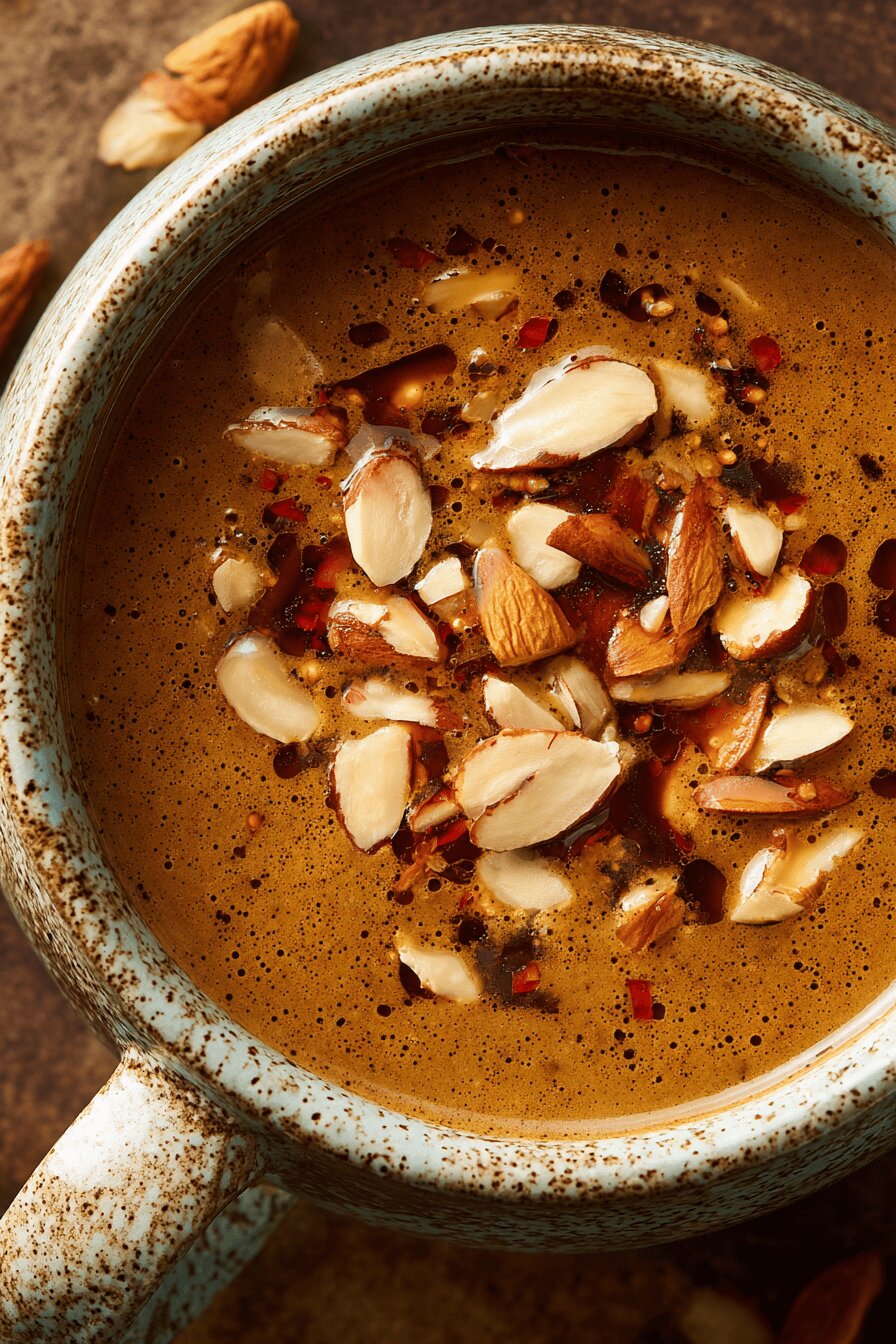 Creamy textures meet toasted nuts. Sharp balsamic tang fades into sweet honey notes. Instead of the usual onion, shallots bring delicate aroma. Broth base half chicken, half vegetable, balances richness and lightness. Smoked paprika adds an unexpected depth. Ready in under 40 minutes. Thickens softly with a cornstarch slurry not too heavy, lending a velvety finish. Ideal over roasted root vegetables or grilled chicken. Almonds give contrast — crunch and nuttiness. Salt and pepper tweak to brightness. Stir, taste, and adjust. No fuss but layers of taste.
