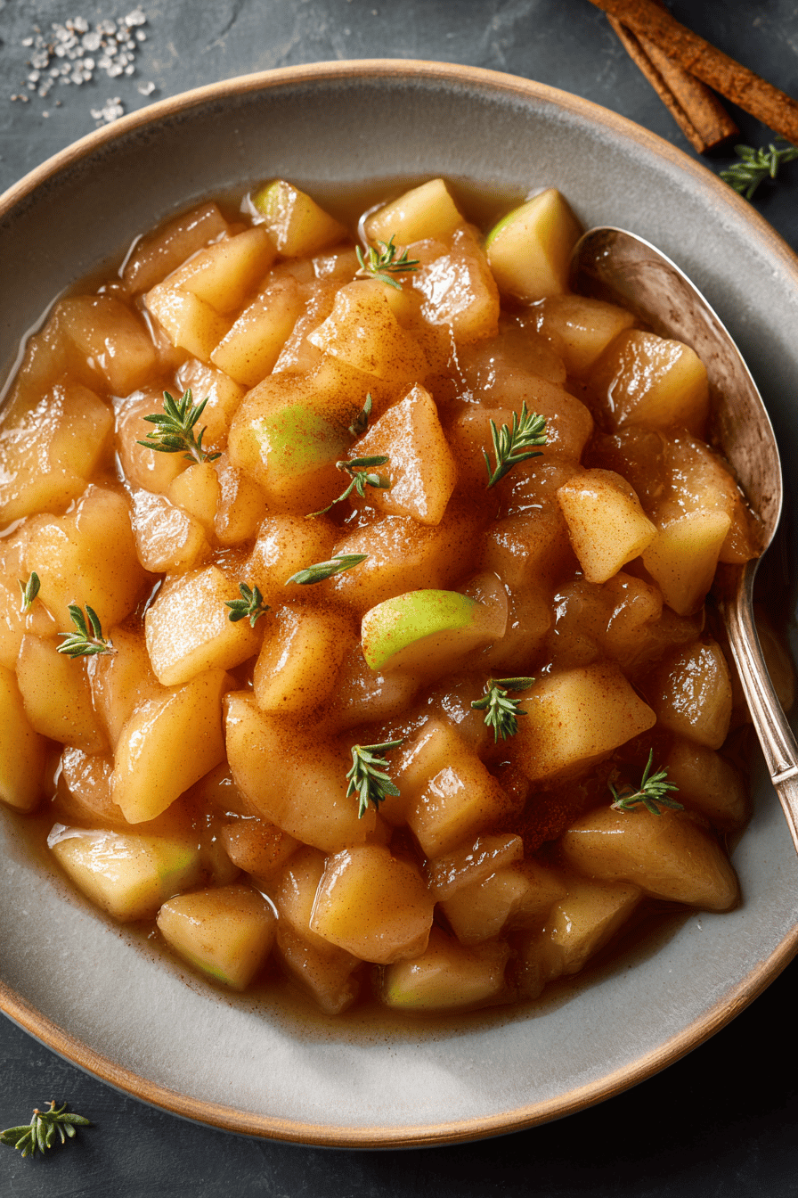 Fruit compotes—simple but tricky. You want soft yet not mushy, balanced sweetness. Apples: choice matters. Granny Smith brings acidity, gala gives sweetness and smooth skin. The trick? Quick high-pressure burst to avoid cooking down into jam. Aroma bursts right after pressure release tell you it’s done. Don’t overcook, dark color means burnt sugar, going off. Stirring sugar into batches allows control instead of dumping all sugar at once—saves rebalancing later. Cinnamon tang wakes up flavor but don’t overdo. Texture should be a mix: a few chunks disrupt smoothness, keeps interest on the palate.