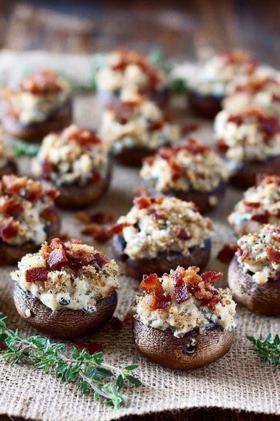 Bacon and cream cheese stuffed mushrooms with a tweak. Swap sour cream for cream cheese for tang. Mushrooms cleaned with damp cloth, not soaked. Bacon crisped, rendered fat saved for flavor. Stems chopped fine, cooked in bacon grease until soft and fragrant. Garlic and onion powders paired with sharp aged cheddar instead of Parmesan bring sharper notes. Filling spooned generously into caps, baked till bubbling and edges golden. Visual cues prioritized over timers; bacon fat aroma rising signals progress. Serves 18 to 22, about 60 calories each, adaptable to ingredients on hand.