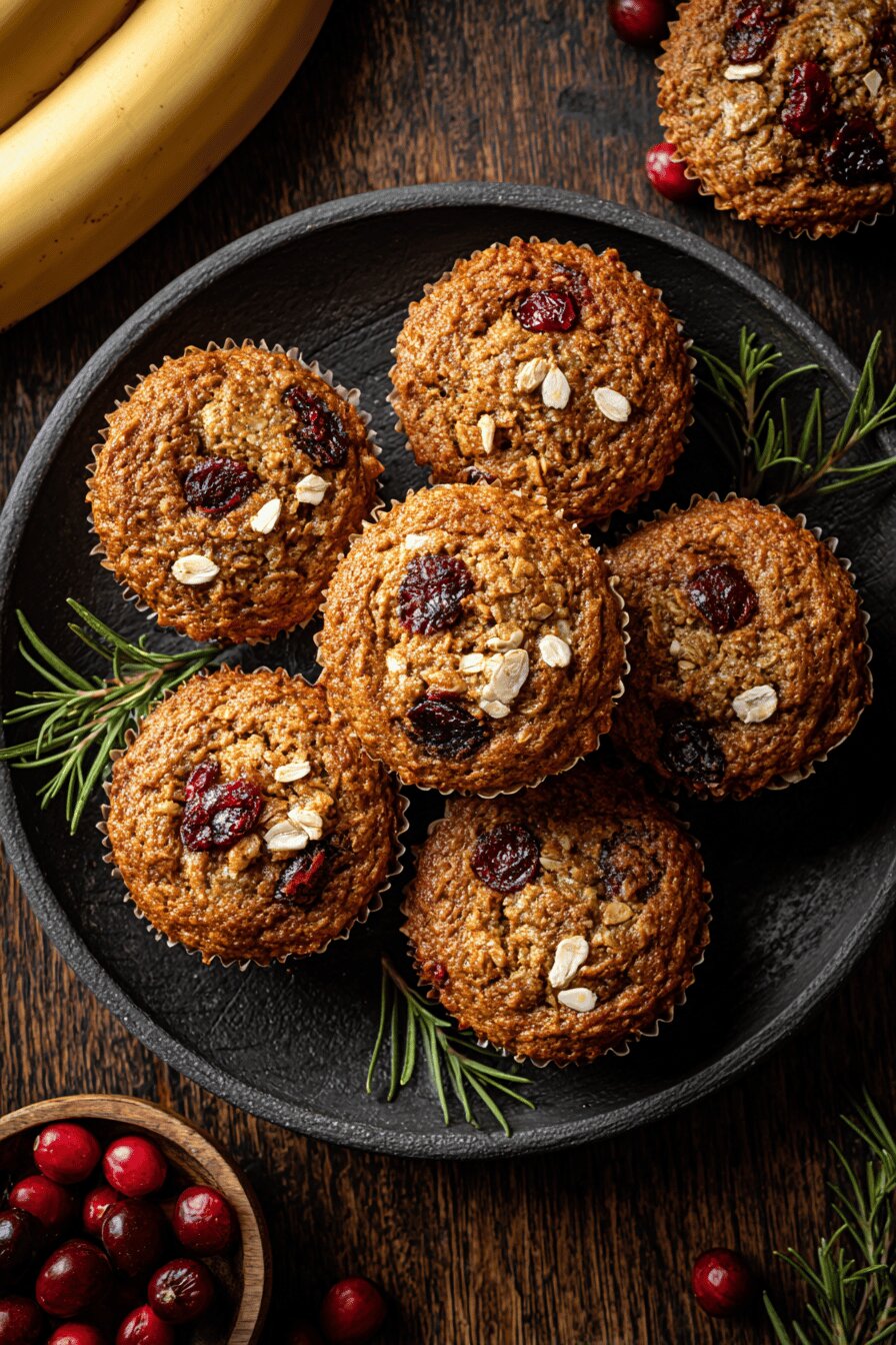 Twist on bran muffins swapping some All Bran for oat bran and cane sugar for honey. Baked just right to get moist crumb with crispy edges. Bananas mashed well to release sugars, cranberries punchy tartness. Spices changed to nutmeg and ginger to shift flavors. Slightly less flour, more bran for bite. Muffins rise evenly, golden domes crack surface, subtle aroma cues doneness. Perfect for grab-and-go or breakfast with butter. Adjust oven rack middle-high for best air circulation. Watch muffins, not timer—fork test always wins. Sub dry milk powder if no milk, or almond milk for a nutty hint.