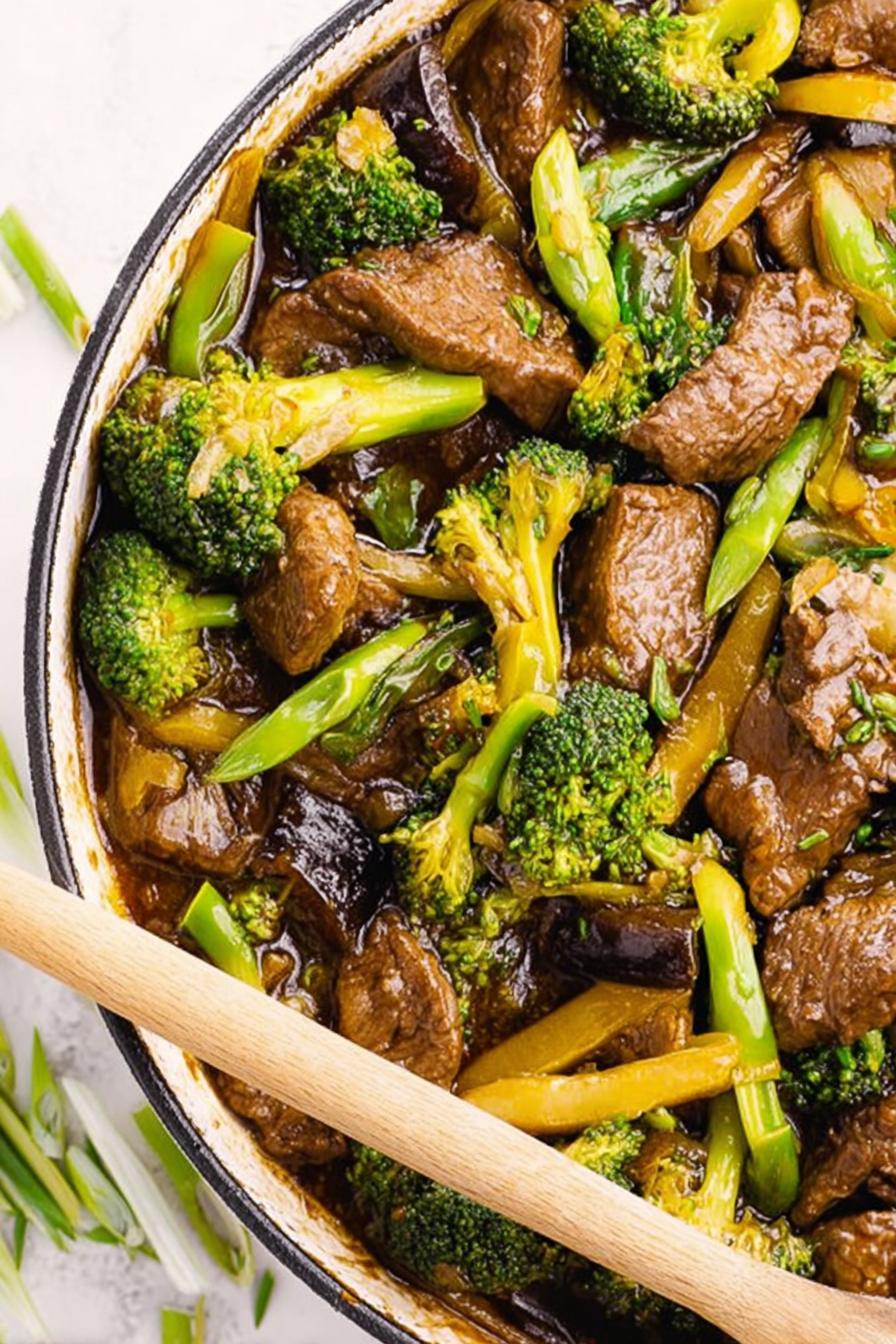 Sliced beef marinated in soy and mirin, stir-fried quickly over high heat for caramelized edges. Broccoli steamed briefly in residual moisture, preserving snap and bright green color. Sauce built with soy, oyster sauce, ginger, garlic, and brown sugar adjusted with beef broth and cornstarch for silky thickness. Meat reheated with sauce to meld flavors. Garnished with green onions and toasted sesame seeds for nuttiness. Flexible with ingredient swaps like tamari for soy or coconut aminos for lower sodium. Precise timing focusing on visual and textural cues avoids overcooking, delivers balanced, saucy dish ideal over rice.