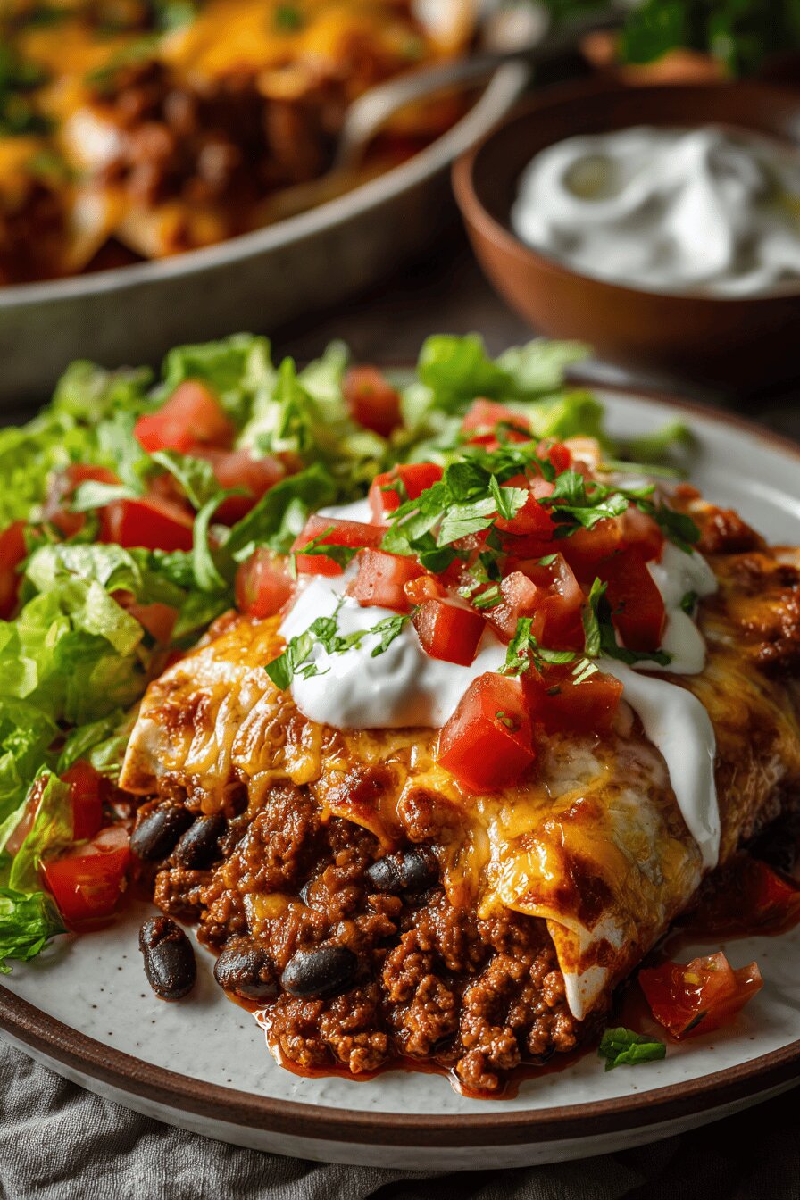 Ground beef braised with smoky chipotle and oregano, folded with black beans into tortillas, bathed in spicy tomato-chipotle sauce, topped with melting aji cheese. Oven-rivered heat melts cheese, melds flavors. Salsa and sour cream cooling counterbalance with tang. A robust, layered Tex-Mex staple reworked with Italian herbs and fire-roasted tomatoes for a punchy, lively dish. Practical for rushed weeknights or weekend batch cooking. Layered heat. Textural contrast from creamy beans and crisped edges. Cheese melting signals readiness. The cumin is replaced with oregano, aji cheese swaps Monterey Jack to tweak smoky notes. Use black beans instead of pinto. Total cook time just shy of 50 minutes.