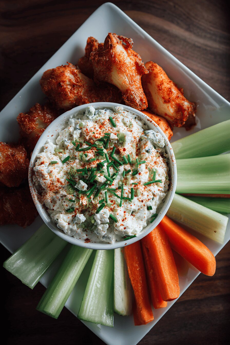 Cut cheeses by volume, not weight — blue cheese can be overpowering. Swapping mayo for Greek yogurt adds probiotic tang and reduces fat; plus, it thickens naturally without heaviness. Choosing crème fraîche over sour cream brings a silkier mouthfeel and subtle buttery notes. Roasting garlic mellows the harsh, sharp punch raw garlic often delivers—no burnt tongue regrets. Aim for balance — each flavor plays a part: acidity, sweetness, salt, herbs. Smoke paprika sneaks in a layer of warmth, unexpected but essential. This dip resists watery failings if chilled properly; texture cues guide you — glossy but firm. Keep it chilled, keep it versatile, resistant to rush, ready for big flavors.