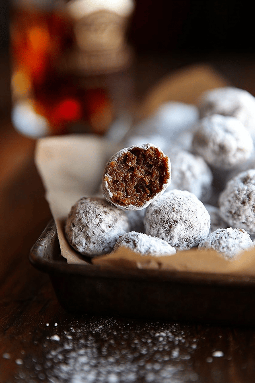 - Using a 1 tablespoon scoop or level spoon, portion dough then roll quickly into 1-inch spheres. Dough consistency matters: too dry cracks, too wet smudges. Adjust with splash more bourbon or sprinkle cocoa to fix.