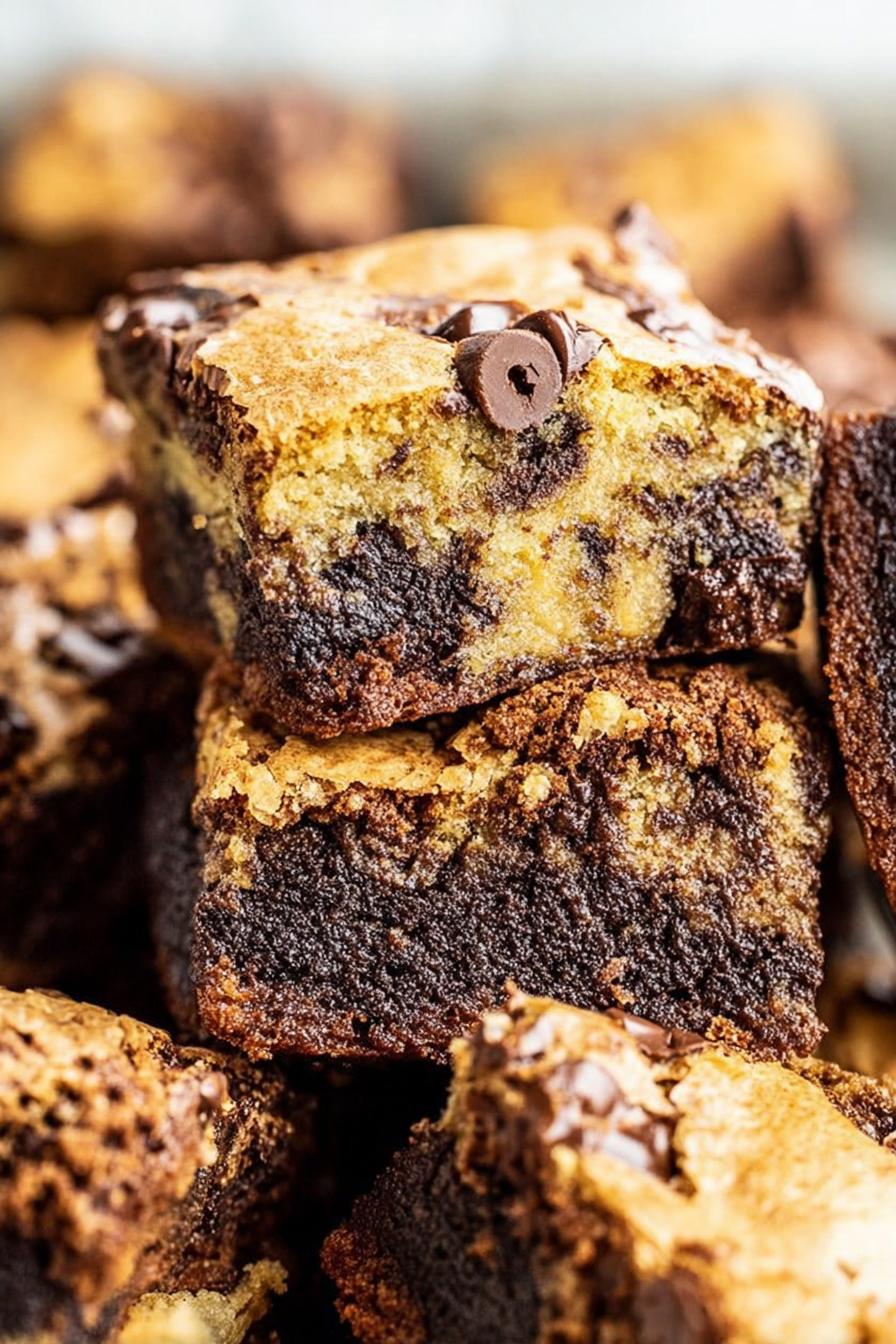 Cookie and brownie mashups aren’t new but nailing the balance takes care. Too much mixing collapses brownie lift or overworks cookie dough gluten. Cocoa powder choice shifts bitterness — Dutch process smooths and darkens. Olive oil over vegetable oil undercut richness but adds complexity. The swirl technique is key, too much blending homogenizes, loses dimension. Foil traps steam first 20 minutes ensures moist middle, then crisping exposed top finishes texture. Watching visual cues beats timer, especially testing toothpick for moist crumbs, not batter. Brownie batter’s glossy, thick; cookie dough soft but firm enough to drop. Keep chocolate chips in both, hidden pockets of molten choc that pop on bite. The aroma fills whole kitchen–deep chocolate with buttery sweet hints. Patience through cooling helps slice, else brookies crumble or stick.