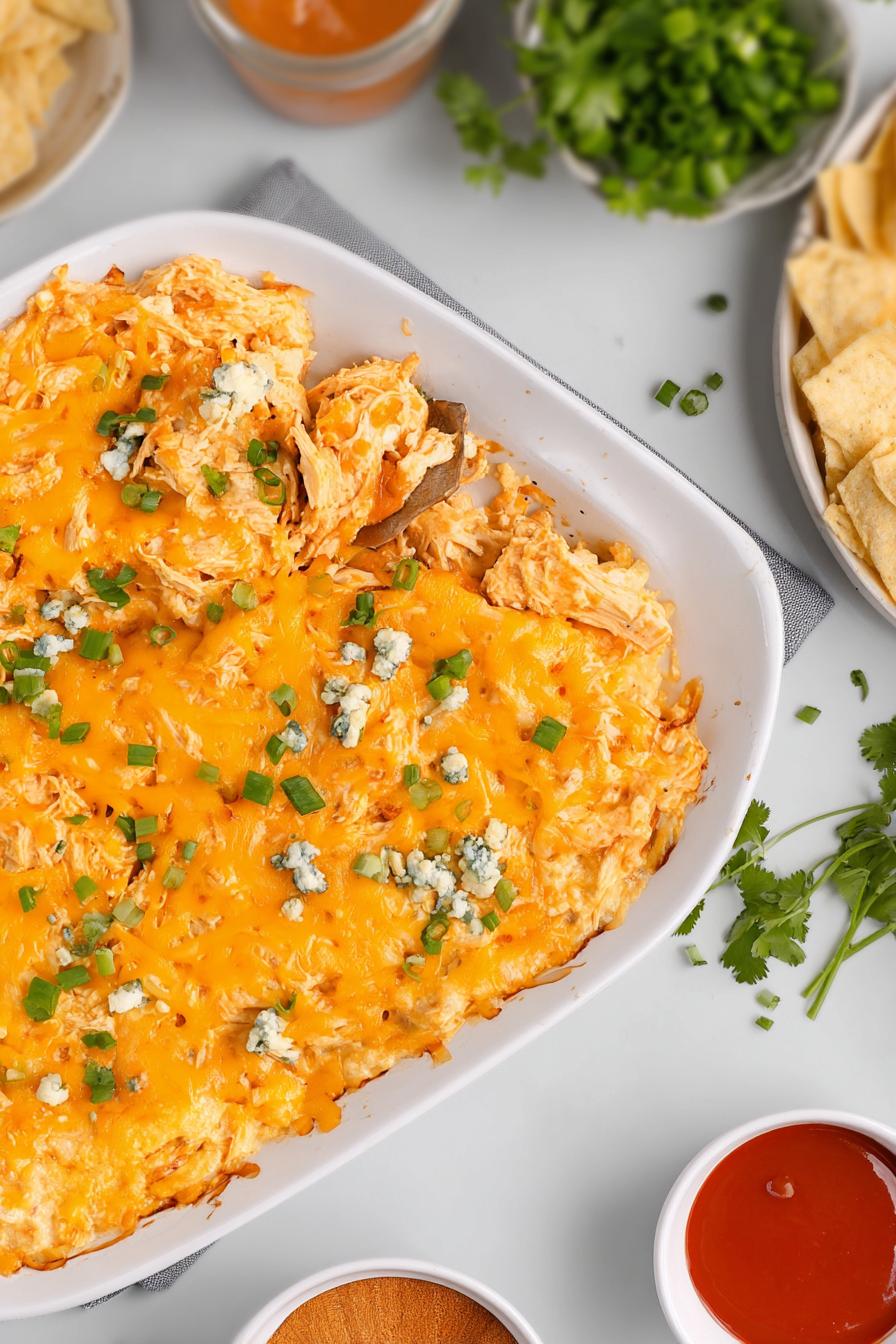 Riced cauliflower must be steamed or microwaved beforehand to avoid extra water sogging the casserole. You can swap heavy cream for Greek yogurt but add it off-heat to avoid curdling. Cream cheese should be soft; if cold, sauce lumps. For chipotle powder, smoked paprika works but loses slight heat and smoky profile. Adjust buffalo sauce to heat preference. Blue cheese is essential for tang and texture; goat cheese or feta won’t work here. Rotisserie chicken saves time but grilled or baked chicken chunks also suitable. Fresh parsley brightens heavy flavors at the end.