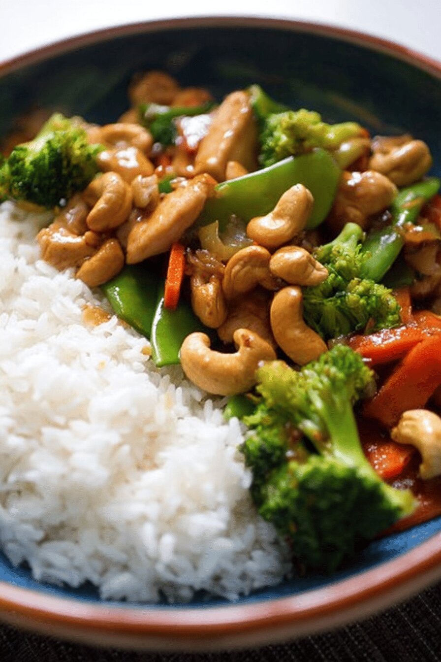 Marinated diced chicken seared to golden, tossed with a colorful mix of crunchy veggies. Toasted nuts thrown in last for sharp contrast. A mix of soy and tamari for salty depth, oregano swapped for fresh basil to brighten. Cornstarch slurry thickens the simmering sauce, garlic replaced with ginger-garlic paste for punch. Edamame and bell pepper swapped with snap peas and baby corn to keep things fresh. Precision in timing, texture, and flavor layering avoid mush and blandness. Quick meal built on solid fundamentals any cook can trust.