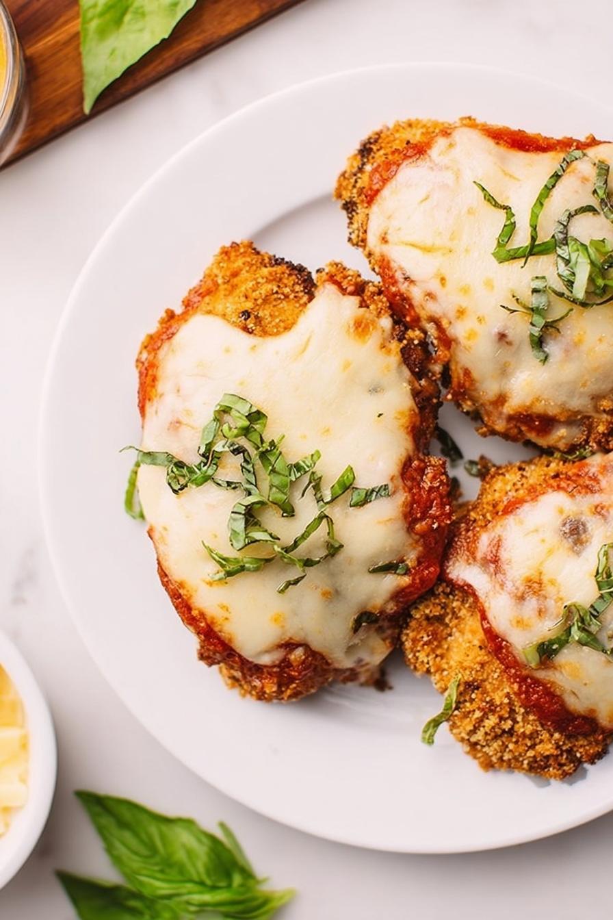 Butterflied chicken for quick cook, thin, uniform. Seasoned flour hits notes with smoked paprika and oregano, richer than plain Italian seasoning. Breadcrumb layer is asiago-cheese infused panko, adds zing, crunch works better with cheese bits inside. Lower temp air fry at 390 instead of 400 slows crust darkening; timer tweaked to 6 min flip, 6 min finish. Cheese twist: half mozzarella minimal bite, half provolone smooth melt. Marinara topped post cooking before short melt bursts finishes dish. Visual cues trump timer: golden crust, bubbly cheese, air fryer aroma of garlic and smoke. Dry chicken before breading or breading slip-slides off. Serve with garlic oil pasta or simple spaghetti. Crisp on outside, tender inside. Aroma, texture, heat all lined up. Pro moves skip measuring strictly, watch crust color, smell garlic herbs hit hot air. Crisp breading lockdown, moist juicy chicken fast, melty cheeses bubble on top. Simple, firm steps for solid meal every time.