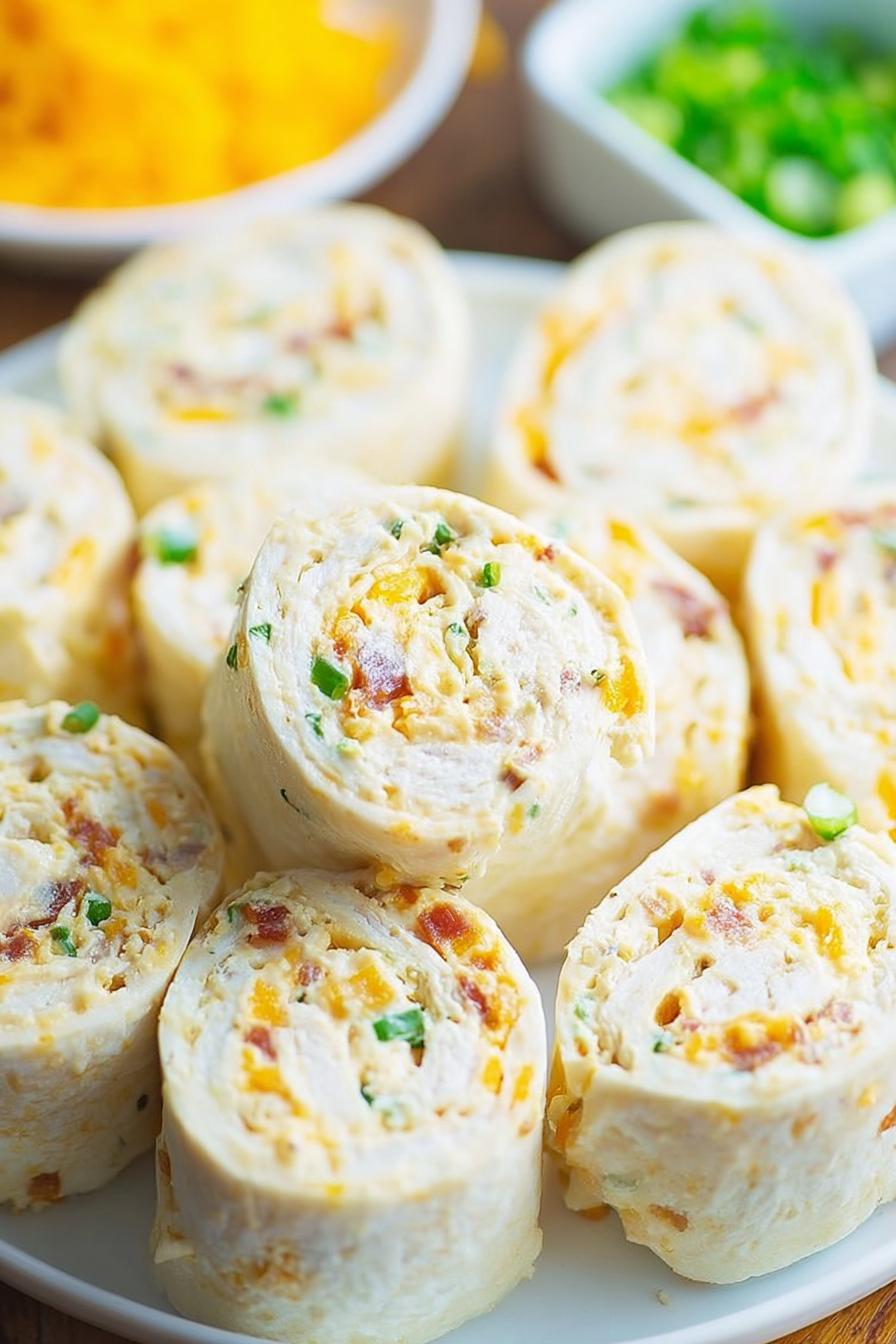 Cream cheese plus herbs and cheese is simple. Throw in diced chicken and smoky turkey bacon as protein layers. Fold with scallions, tangy Worcestershire and hit with a splash of hot sauce if you like heat. Thick spread rubbed all over soft flour tortillas. Important: spread edge-to-edge or rolls won’t hold. Wrap tightly in plastic. Chill so fat solidifies to lock shape. Then slice. Clean, neat pinwheels ready for trays, parties, whatever. No cook means easy. Make ahead at your pace. Learn to read texture instead of clock—firmness is key. Just right spread texture makes or breaks these. Avoid watery or crumbly disasters. Keep tortillas supple to crisply cut. Great for practical cooks with zero fuss but big flavor. Experience says care in mix and timing beats exact minutes.