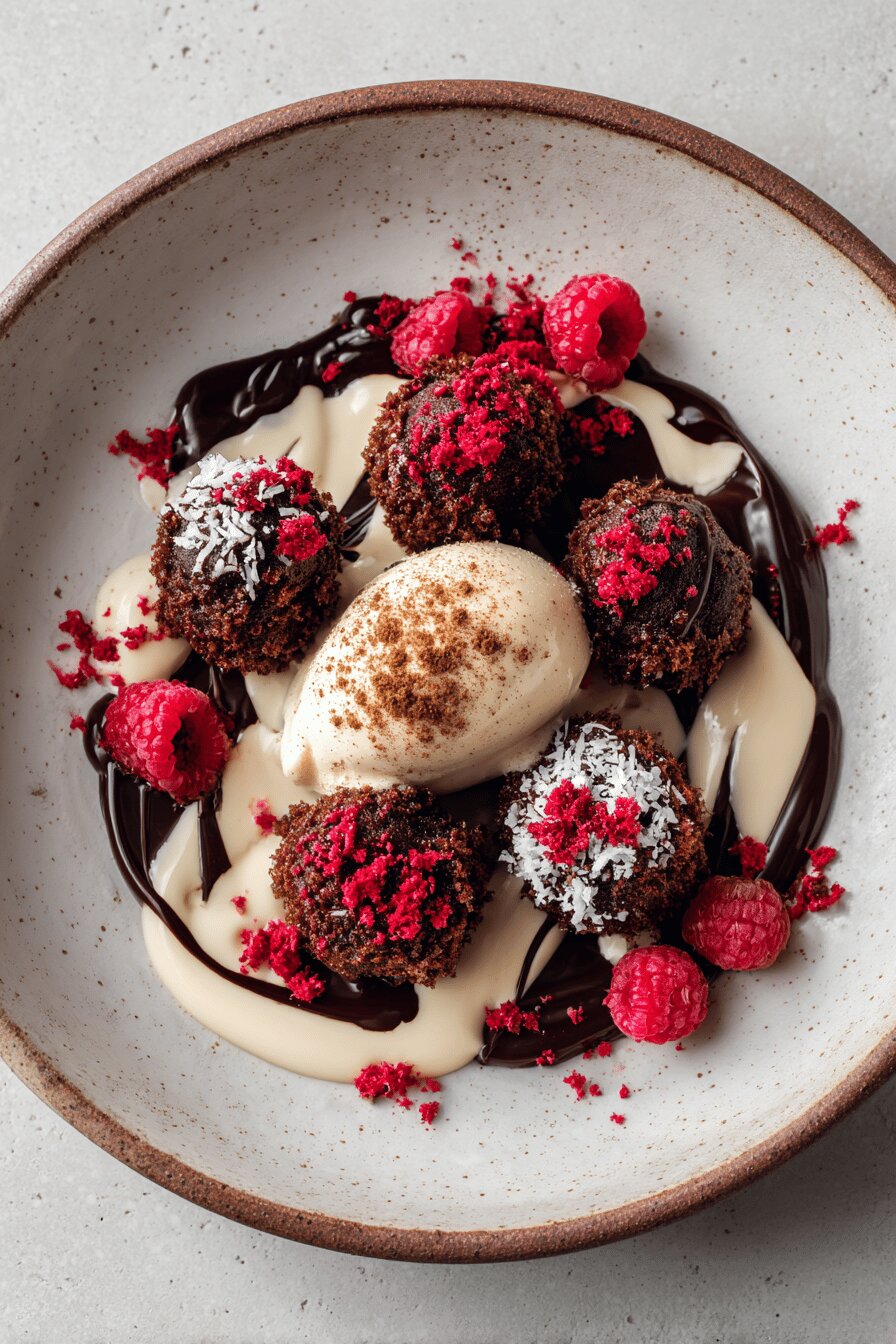 Chocolate and frying aren’t obvious bedfellows but getting the crisp outside and molten center without premature melting or oil seepage is skill. The secret here is firm ganache made ahead, multiple coats to armor it, and freezing. Breadcrumbs aren’t just filler but flavor and textural components. Panko brings airier crunch; raspberries add acid and color. Use coconut milk instead of heavy cream for slight tang and dairy-free option—adds subtle complexity. Monitoring oil is crucial. Flames too high? Burnt crust, raw middle. Too low? Oil seeps in, soggy mess. Ice cream with cinnamon grounds the bite, brightens mouthfeel. Timing soft but eyes and fingers dictate doneness—color, firmness, bubbling sound—the language of frying. No rushing.
