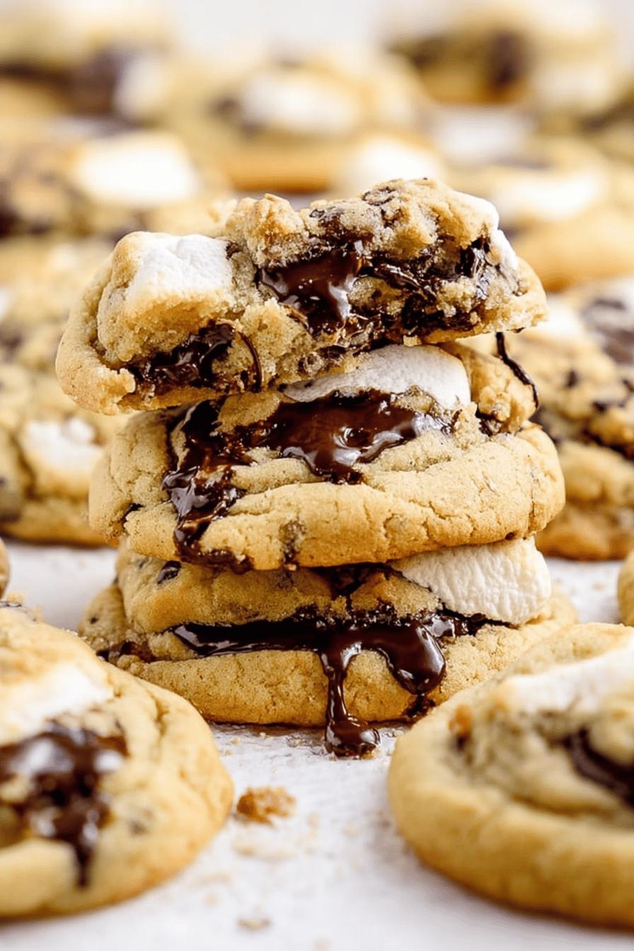 Soft cookies loaded with chunks of dark chocolate and gooey marshmallows. Flour mixed with cornstarch for tender crumb. Butter and sugars creamed until pale, not overbeaten. Eggs added one by one, vanilla for depth. Dough chilled. Baked just till edges brown and centers set. Simple swaps: dark chocolate bar for semi-sweet, honey for brown sugar. Marshmallows frozen to avoid melting too fast. Chilling critical to keep shapes, prevent spreading messily. Watch aromas for doneness, not just clock. Chewy center, crisp edges, pockets of melted marshmallow and chocolate chunks. Perfect if you dodge overbaking.