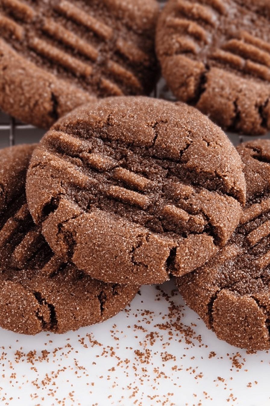A twist on classic peanut butter cookies with a rich cocoa kick. Uses white whole wheat and dark brown sugar instead of all-purpose and light brown. Rolled in crunchy turbinado sugar before baking gives crisp edges. Vanilla swapped with almond extract for a nutty depth. Dough chills longer for sturdier balls, baked slightly less for chewy centers. Perfect balance between chocolate bitterness and peanut butter richness. These cookies crack with a sugar-crisp shell. Watch fork pressure — too hard makes thick, dry cookies. Dip fork in sugar for clean lines. Dough should feel cold and firm but pliable. Use standing mixer or sturdy spatula. Parchment or silicone mat crucial to prevent sticking and burning on sugar crust. Rest cookies before moving or they’ll break. Store airtight returns that fresh chew.