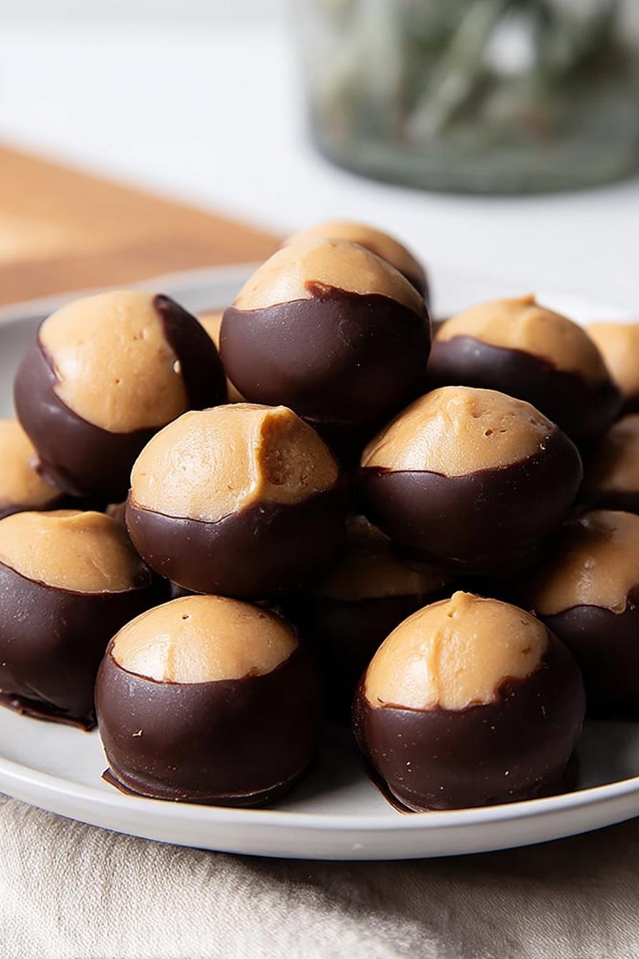 Creaming peanut butter mixture until fluffy removes grit and incorporates air; raw peanut butter powder and sugar alone makes gritty balls. Add powdered sugar slowly—it controls dough structure for clean rolling and crisp drying. Roll balls with lightly powdered hands to avoid stickiness; finger warmth can melt butter inside dough if you rush, causing sticky mess. Freezing firms balls evenly; if surface feels tacky when chilled, return for another round. Chocolate melt slow warms cocoa and butter gently; fast heating seizes chocolate—never microwave at high heat without stirring every 10 seconds minimum. Insert toothpicks gently in chilled balls to prevent breaking. Dip in melted chocolate warm but not hot—too warm drips off too slow or melts peanuts inside, too cool clumps unevenly. Setting chocolate upside down aids shine and prevents unsightly drip marks; chocolate should feel firm but not brittle before storage. Chill times flexible; use touch to gauge readiness; snap signal is ready chocolate. Cover while chilling to keep moisture out. For uneven climates, refrigeration better than pantry. Allow candies to come to room temperature briefly before eating to sharpen flavor and soften peanut center slightly.