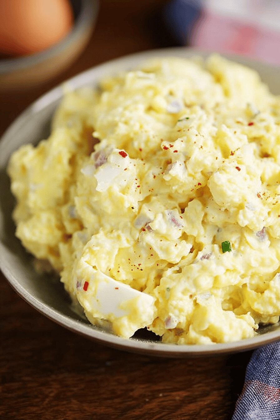 Yukon Gold potatoes are ideal; waxy enough for holding shape, creamy enough for mouthfeel. Russets on hand? Fine but be extra gentle when boiling, they’re starchier and can fall apart quicker. Salt in boiling water is key — seasons inside cells, not just surface. Mayonnaise is classic but Greek yogurt can lighten it, add tang. Substitute horseradish mustard with a good Dijon if you want milder heat. Capers replace sweet relish; if you want brightness without brine, chopped dill pickles or olives are fine. Eggs add creamy texture and protein — can skip or double up. White onion provides sharp bite, can use shallot if preferred. Adjust amounts of onion and capers to taste; some prefer gentler onion flavor or more tang.