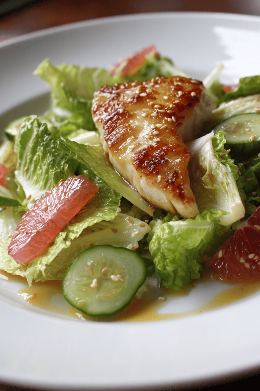 When fish meets citrus, sharp and sweet vie for attention. The goal isn’t drowning the tilapia under syrup but coaxing a shiny glaze that snaps with acidity and glimmers honeyed warmth. Tilapia’s mild flesh needs the bright cut of grapefruit and lime zest here—freshness overpowers blandness. Pan-searing with olive oil gets golden crust without drying. The salad keeps crunch, acidic bite from rice vinegar, mirin softens with sweetness. Sesame seeds bring toasty texture, subtle nuttiness to contrast tender greens and fish. A hint of maple syrup replaces honey, deeper mellow sugars rounding out edges. Timing mostly about attention not clocks—watch that sauce bubble, fish edges firm up. Lime wedge finish brightens finish and ties flavors in. Clean, fast, a little twist on citrus fish that anyone can pull off without fuss.