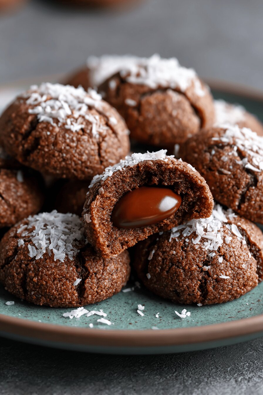 Start with simple pantry staples. Cassava flour swaps wheat; lends slight chew, more rustic mouthfeel. Cocoa powder adjusted—adds noticeable chocolate sharpness without dominating. Arrowroot powder replaces cornstarch; gives subtle crispness instead of gumminess. Coconut oil used refined for neutral fat, not overpowering coconut flavor. Powdered erythritol lowers sugar load, but pure sugar will work where here it’s called out. Cinnamon sprinkled into coconut doubles as warming nut-free spice, subtle but cutting sugar edge. Expect chewy cookies dotted with slightly toasted coconut crunch. Holds shape well but softens slightly with time. Chocolate filling fills the thumbprint pocket, melts slowly at room temp. Patience key. Baking times vary by oven, watch for golden tints in topping to signal done. It’s about eyes and touch, not timer alone. Cool fully before chocolate or meltdown follows. These are sturdy enough to pack or gift but delicate enough to savor.