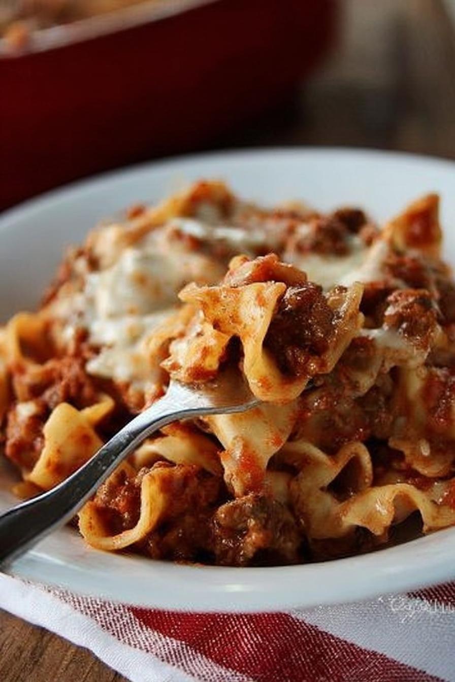 Ever wrestled with lasagna layers slipping and sliding? Forget that chore. No sheets here—egg noodles do the work, soaking up creamy richness and savory meat sauce evenly. Ground beef browned with shallot adds sweetness and depth, not just stovetop grit. Garlic in the sauce wakes everything up but doesn’t overpower. Cream cheese folds with evaporated milk, creating a silky coating holding the noodles together. Cheeses melt to golden pockets, oozy but still shreddy. Not too heavy. Gets out the door quickly too—under an hour start to finish. Don’t fuss with precise times; trust sizzle, smell, and look. The crust forming on edges is your green light. Bonus: use what you have, swap ingredients. More practical than fancy, more satisfying than rushed. This is a busy cook’s win. Even weeknights get some respect.