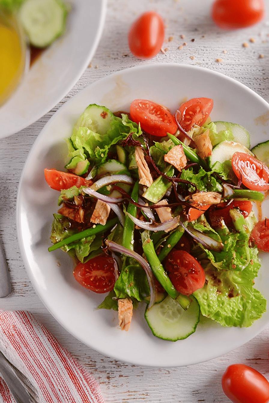 A fresh, crisp salad combining leafy greens with vibrant veggies and a satisfying crunch. Swaps green bell pepper for radish slices, pecans for toasted sunflower seeds. Adds thinly shaved fennel for anise aroma. Dressing shaken until emulsified before coating ensures even coverage. Focus on tactile and visual cues when tossing salad—leaves glossy but not soggy. Quickly served; flaky salt and cracked black pepper finish the dish. Prep around 12 minutes to keep textures alive and colors bright. An easy, adaptable salad that works as side or light lunch. Practical ingredient swaps and kitchen tips included for flexibility and best fresh result.