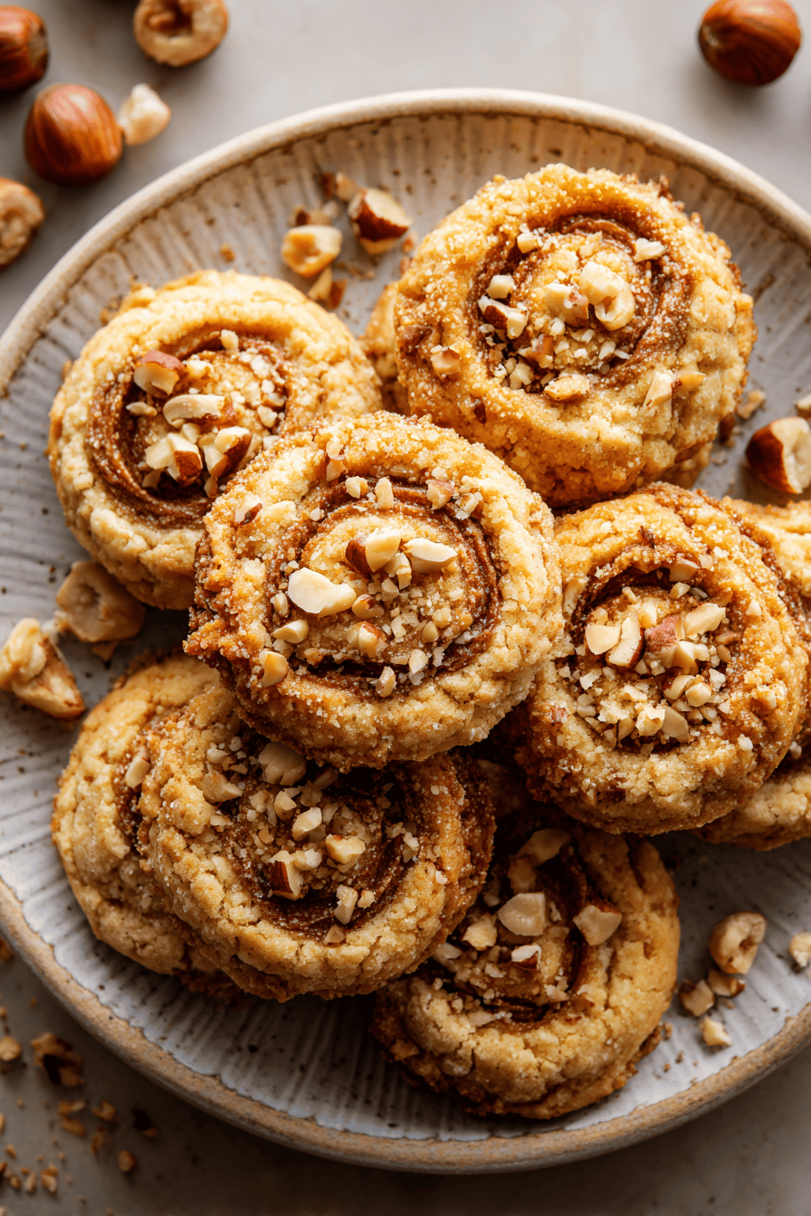 Nutty, crumbly cookies with a semi-sweet spread swirl. Uses browned butter for depth, ground almonds for texture. Replaced tartinade with walnut butter. Lower oven temp, longer bake for better caramelization. Freeze dough balls to preserve shape. Crackles on edges tell when ready. Works with vegan butter and flax egg. Toast nuts till golden, not burned. Mix carefully to keep swirls distinct. A rustic take on nut cookies with a twist of spice and crunch.