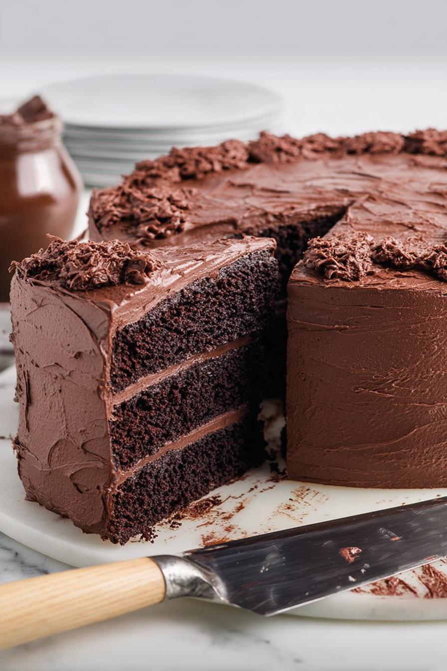 Two 9-inch rounds with a rich cocoa base, coffee-infused for depth. Oil and sour cream keep crumb moist. Cocoa powder swapped with Dutch-processed for smoother flavor. Brown mustard powder in frosting adds subtle heat twist. Whisked butter base whipped longer to trap air. Baking adjusted by 5 minutes, watch edges pull from pan. Frosting thick, fluffy, with a velvety bite. Sweetness balanced with pinch of sea salt. Coffee granules boost chocolate, not coffee flavor. Decent crumble, no dryness despite oil. Classic layer cake setup. Serve room temp or chilled briefly.