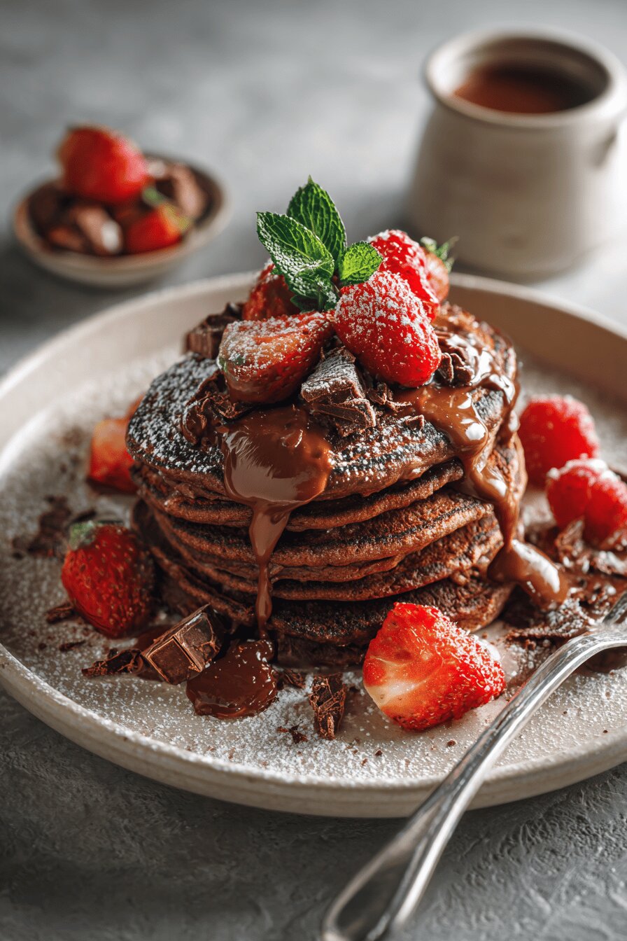 Chocolate pancakes? Sure but ditch standard buttermilk for sour cream if you want moist, tender crumb with subtle tang. Cocoa powder amount reduced a bit to avoid bitterness; brown sugar swaps white for depth. Chocolate chunks tear as you bite—gooey heat bursts. Egg white whipped separately traps air. Folding technique, no overmix is non-negotiable. Batter rest time? Don’t skip unless you prefer chewy subs. Heat control is your best friend. Watch for bubble bloom on surface, matte edges. Flip once, no poking. Serve with complementary sauces or nuts for interplay of textures. If pan sticks, your heat’s too high or fat missing. Simple fixes, smart forks. Real kitchen know-how.