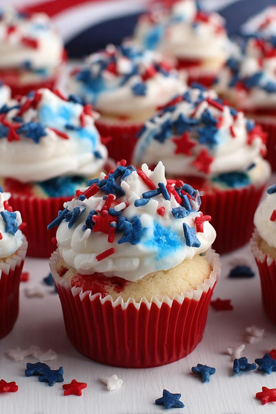 Oven temperature critical for even rise and moist crumb; too hot and edges dry before center sets, too cool and cupcakes flop flat. Use a reliable oven thermometer. Mixing batter—overdoing it develops gluten from flour leading to dense texture. Stop when almost homogeneous but not liquid. Folding sprinkles in last helps keep their form and color; overmixing is common error leading to blotchy cupcakes. Filling liners only ¾ full prevents overflow—if overfilled expect flat tops and irregular shapes. Bake time a guideline: watch golden edges and toothpick result rather than clock. Cool completely on wire rack so air circulates; avoid condensation that makes wrappers soggy and frosting slide. Frost with chilled cupcakes only; warm cake melts buttercream. Whipping frosting until fluffy but firm avoids spread-out globs. Adding more powdered sugar adjusts sweetness and stiffens frosting; adding milk thins it—balance for desired consistency. Sprinkles on top add texture contrast and visual fun but press gently to avoid crushing frosting layer. Store leftovers airtight to keep moistness; stale cupcakes can be revived by heating briefly in microwave wrapped in damp towel.