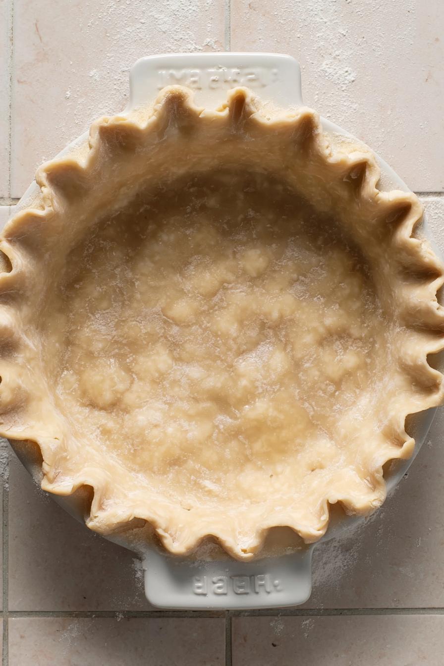 - Freeze crust for 30 minutes before baking to seal crimp and maintain cold barrier. Cold dough fares better against oven heat shock.