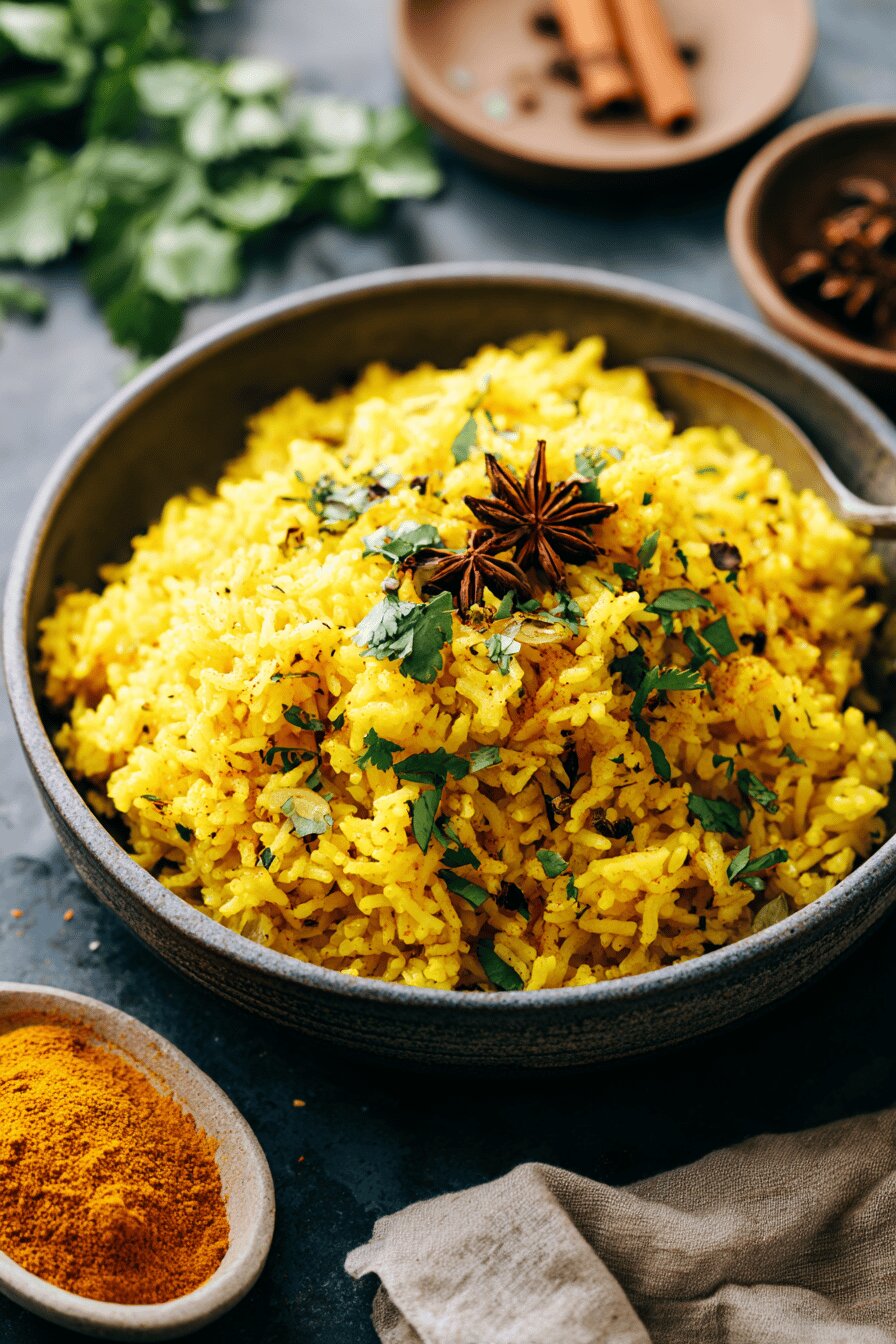 - 💡 Water and turmeric—stir only once. Don't beat grains. Break them? That’s trouble. Cook without interruptions, lid on, no peeking.