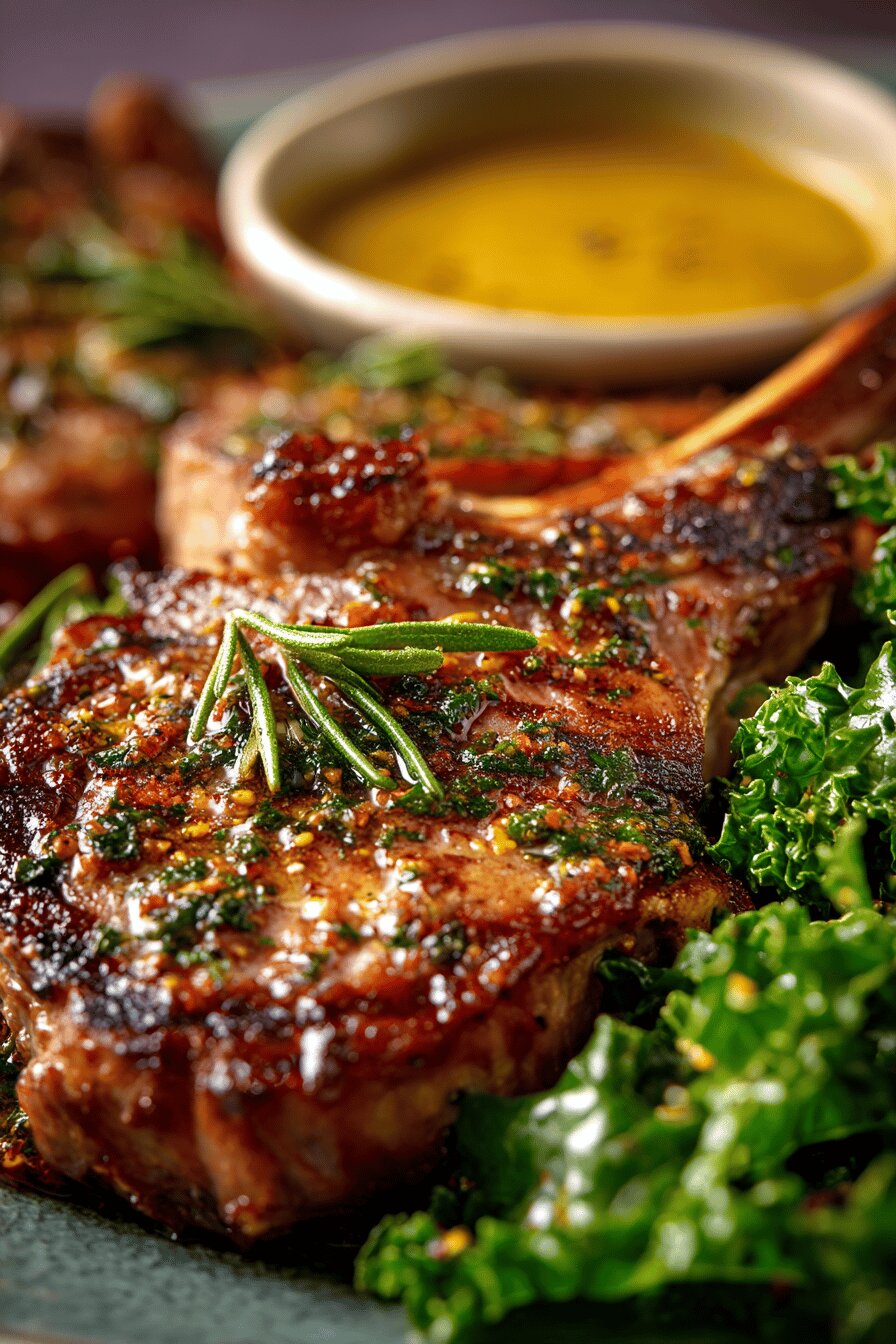 Start with thorough mixing. Marinate longer for deeper flavor. Covering tightly to avoid fridge odors. Grill setup is crucial: clean, oiled grate avoids sticking, burning. Sear fast on high heat, lock in juices and create crust. After, reduce heat to medium to avoid burning while bringing internal temp up. Turn meat midway, even cooking. Use thermometer if unsure, target medium or medium-rare (55-60°C). Resting meat under loose tent crucial, juices redistribute, meat relaxes. Cutting too soon loses moisture and toughens surface. Slicing against grain is best practice for tenderness. Serve immediately with sides. No sauce cooking steps; rely on prepared mustard sauce and fresh kale salad to brightness and crunch, balancing grilled richness.