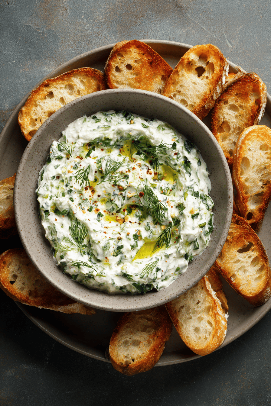 Forget watery, bland spreads where yogurt drips off your spoon. Thickening yogurt is non-negotiable — whey drains off, leaving dense creaminess that clings. Texture is foundation here. Relying purely on cucumber moisture? Recipe tanks. Press that grated cucumber well; salt coaxing water out is a must but not a magic fix. Herbs swapped—basil for mint, dill for an added layer. Smoked paprika creeps in for understated warmth, not overwhelming or traditional, just enough to play off fresh coolness. Garlic is in paste form, no large chunks. Olive oil isn’t an afterthought — emulsifying it integrates fat into yogurt, creamy mouthfeel elevated. Serving with warm bread adds crunch and heat contrast. Dip brings punch to plain pita or toast. No fluff, just layered flavor and the kind of texture that makes you keep dipping. Atmosphere of aromatic kitchen, garlic sharp but mellow, herbs bright and fresh, olive oil lush, a whisper of smoke from paprika. That’s the canvas. Timing flexible but watch visual cues—thickened yogurt, drained cucumber, glossy mix. No soggy mess. Practical, memorable.