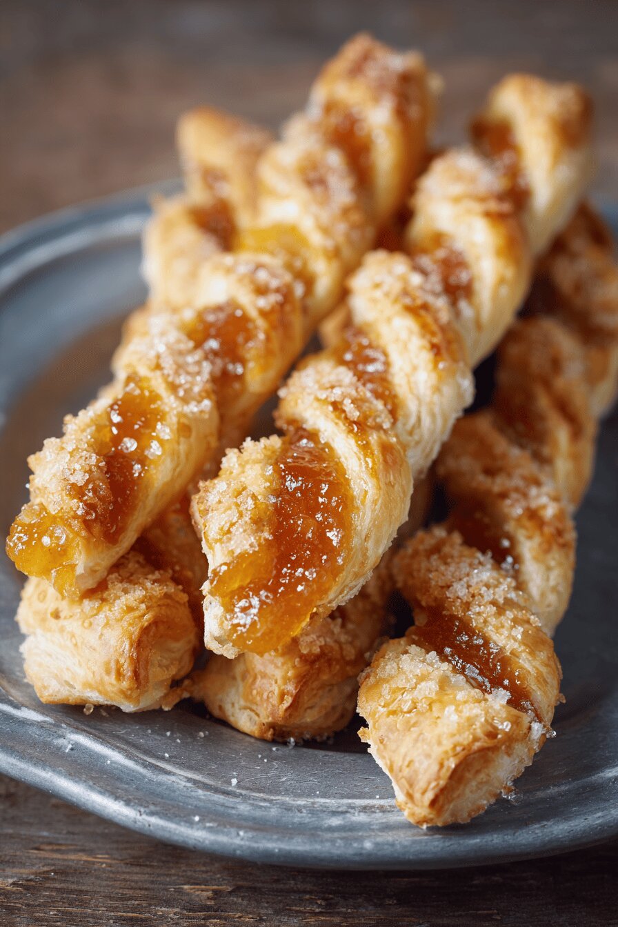 Flaky puff pastry strips twisted with jam filling, baked until golden with a crunchy sugar topping. Adjusted from a classic, swapping basic jam for citrus marmalade and replacing traditional eggs with a plant-based wash. Focuses on texture and aroma cues rather than strict timings. Ideal for 4 to 5 servings, simple ingredients, quick prep. Tips included to handle dough elasticity and prevent sogginess. Sugar caramelizes audibly while baking, edges turn crisp and fragrant. Practical twists to fit allergy concerns or pantry shortages.
