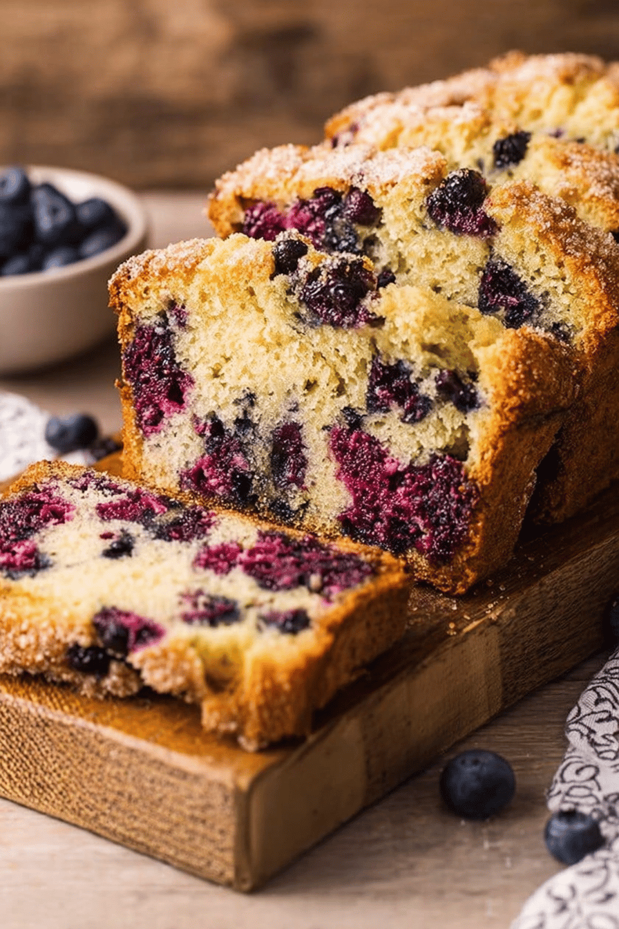 Preheat lower than normal, 345°F rather than 350°F. Slower bake lets crust develop a deep golden hue without darkening edges too fast. Toss blueberries in arrowroot starch thoroughly — failing this leads to berry clumps at bottom. Always sift dry ingredients to prevent pockets of baking powder or lumps. When mixing wet and dry, fold carefully to avoid gluten overwork and resulting toughness. Stop as soon as flour disappears. Berries go in last with gentle folding to keep them whole. Grainy coarse sugar on top means rustic crunchy crust; skip if preferred softer bread top. Start testing at 43 minutes. Toothpick or knife with slight moist crumb sticking means done — don’t wait till totally dry or loaf dries out. Let rest in pan to settle and finish cooking with residual heat. Brush with warm butter right after removing from pan, seals moisture in and adds flavor. Cool fully before slicing for clean cuts and set crumb. This technique beats any strict timing instructions; sense the loaf with your eyes, nose, and knife experience. Store wrapped well to preserve freshness or freeze sliced for quick future snacks.