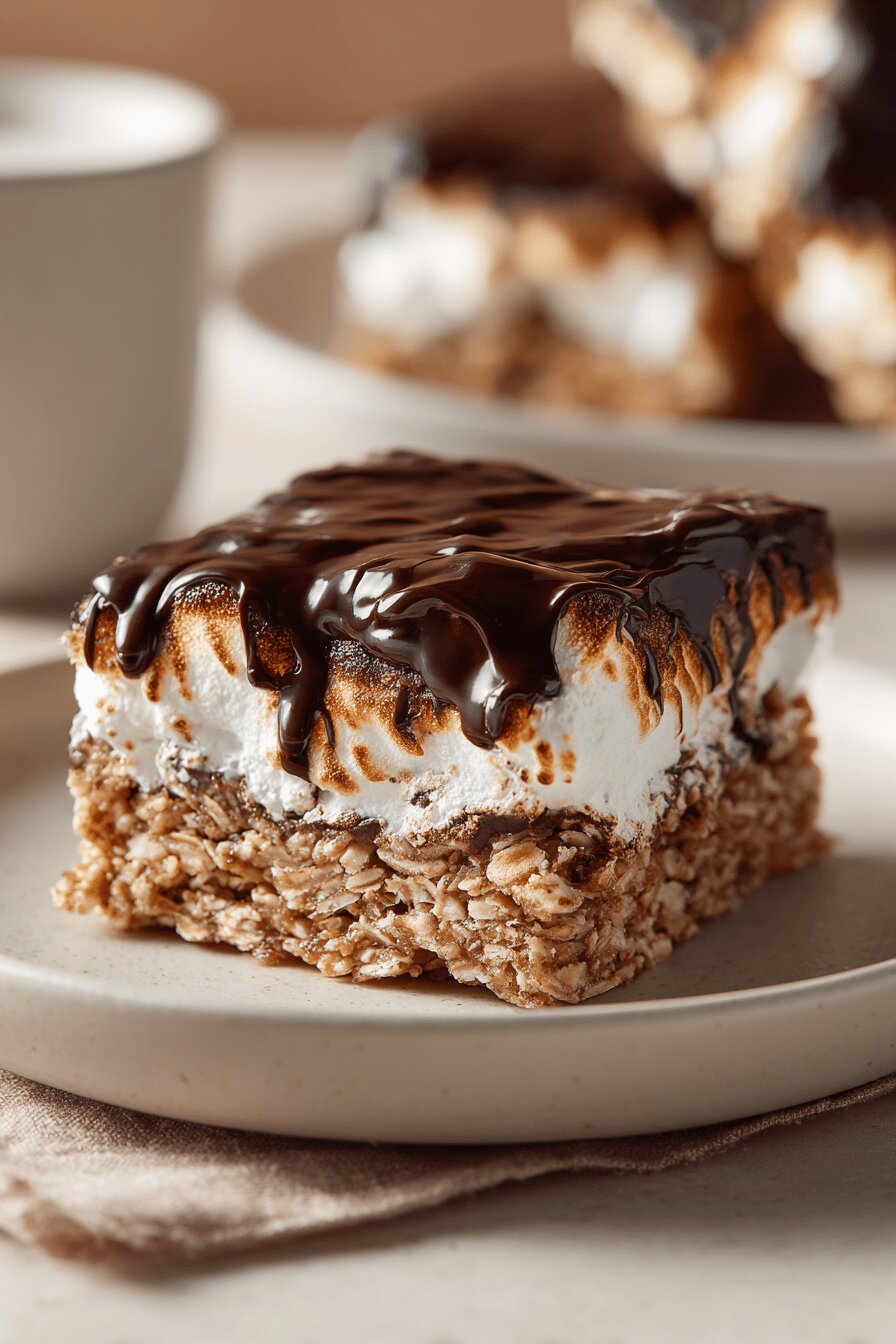 Soggy crusts. We’ve all fought them. Here, strong oats and whole wheat add bite and nutty depth, a sturdy base that holds marshmallow weight. Marshmallow itself? A whipped syrup, not just sugar fluff—gelatin’s bloom, syrup temp crucial. Skip that, you’re stuck with glue or puddles. Maple adds a sharp sweet note, balanced with agave’s mild body and salt to cut syrup’s cloying. Chocolate finish seals moisture but remains glossy when tempered right. No need to fear shrinking dough; cold butter and resting calm gluten. Whip till peaks hold; soft peaks mean repeat. Let bars rest before slicing; patience for texture is king. The kitchen smells like toasted oats, sweet syrup, dark chocolate midmix; cues not to be missed.