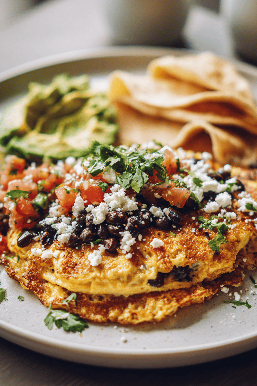 Flour holds structure; unbleached preferred to avoid chemical aftertaste. Baking powder provides gentle lift which eggs alone can’t. Chipotle chili powder not overpowering but gives smoky depth, oregano adds herbal complexity. Whole milk balances richness and helps flour absorb without lumping. Queso fresco crumbles easily, melts with subtle sharpness—feta works if unavailable but salt accordingly. Salsa mix leverages creamy avocado and acidic tomato; scallions for bite, beans for protein. Charred corn optional but highly recommended for smoky dimension. Avocado oil chosen for neutral flavor and high smoke point. White wine vinegar light acidity counteracts richness; lime juice vital for brightness. Cilantro fresh, aromatic, wrong substitution here kills vibe. Crema rounds heat and adds creaminess. Tortillas warm, soft, slightly toasted. Avoid nut contamination: no nuts used; adjust oil if allergic to avocado.