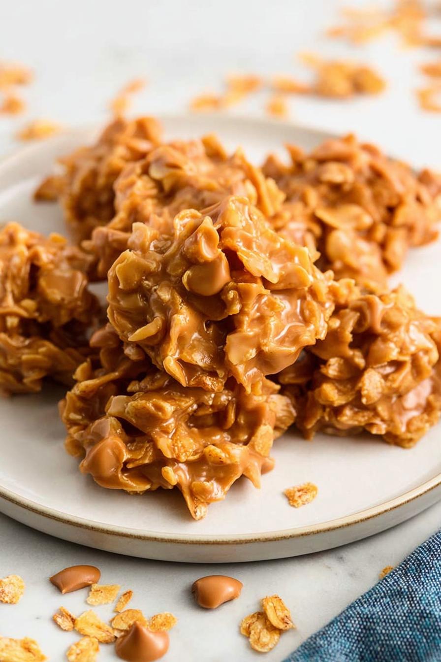 Melt butterscotch chips with creamy almond butter for a nutty twist. Toss malted milk balls with Rice Krispies for extra crunch instead of Corn Flakes. Chill spoonfuls on parchment until firm. Subtract a few minutes cooking to avoid grainy sauce. Store airtight. A quick fix for sticky-sweet cravings. Watch for bubbling edges when melting; prevents burn and grain. Almond butter changes texture, slightly less oily than peanut butter, holds shape better. Malted milk balls add chewy bursts, avoid soggy cereal by mixing gently and chilling immediately.