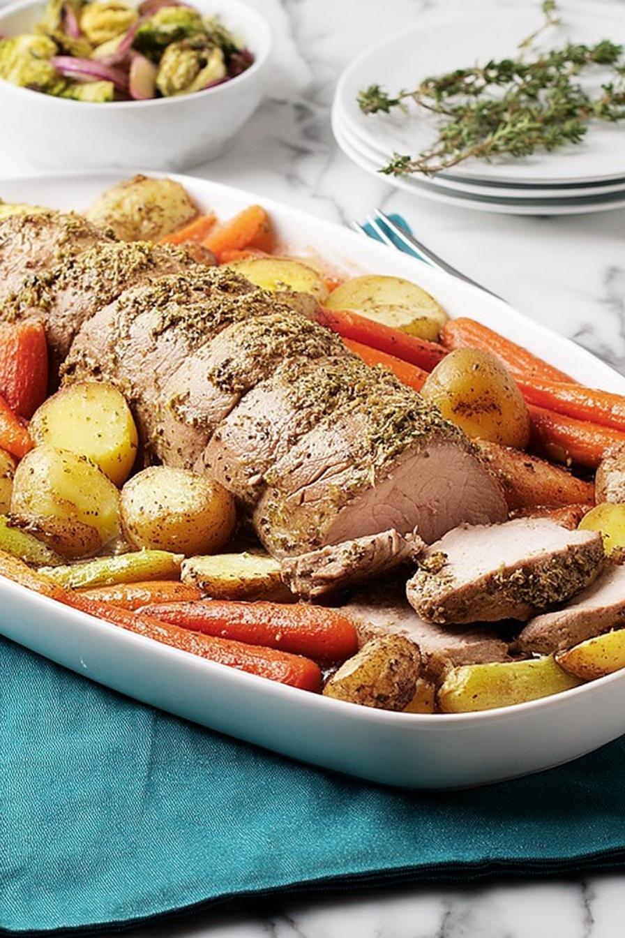 Forget fussy multitasking and clamp-down recipes. Start by heating the oven hotter than you think, creating immediate caramelization. That punchy heat seals pores on the pork and vegetables for deep flavor and texture. The rub is more than seasoning—garlic and onion powders punch, but smoked paprika and thyme twist the earthy notes that Italian seasoning alone can’t touch. Tossing veggies with red wine vinegar wakes their natural sweetness during roasting, balancing the pork’s savory crust. The foil boat isn’t a gimmick but a smart containment strategy—trap those juices, baste effortlessly, keep flavors from mingling too much but still close enough to scent each other. Visual doneness beats timers; you’ll hear the sizzle soften, see golden veg edges crisp, smell that pulled-pork roast aroma just shy of char. Resting the tenderloin wraps up the magic—don’t skip this vital reprieve for juiciness. Practical swaps included for when seasons shift or pantry shelves bare, because life rarely follows the grocery list perfectly. This method toughens your cooking intuition—trust the thermometer, the fork, the sniff test, not just the clock.