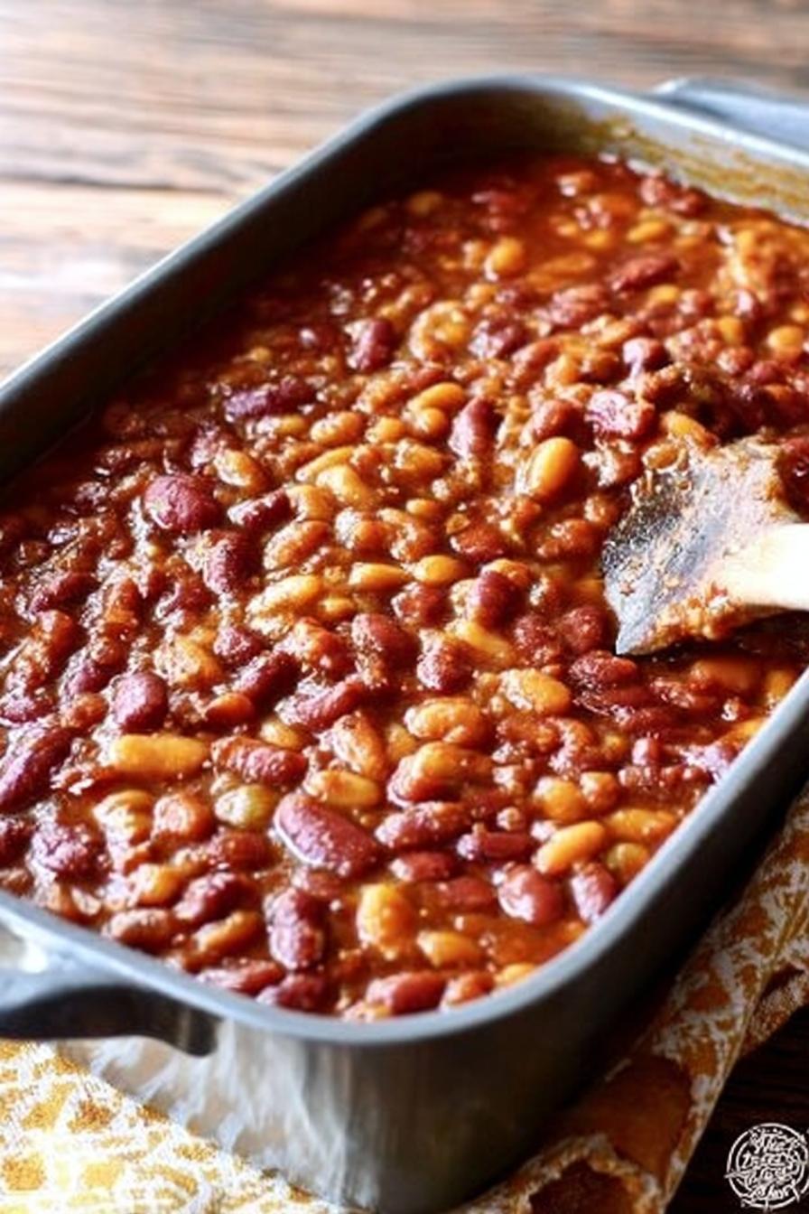 Classic baked beans. Oven roasted low and slow. Subtle swaps for richer flavor and texture. Uses navy beans swapped with cannellini for creamier bite. Maple syrup replaces brown sugar for deeper sweetness. Added smoked paprika brings mild fire and earth. Onion swapped with shallots, finer and sweeter. Slow bake till bubbling, edges caramelized, aroma thickened. Focus on tactile cues—listen for subtle simmer crackles, watch for gentle bubbling rising. No lid, crust forms. Sauce thickens from steam evaporation. Serve thick, not soupy. Backup: can simmer on stove for last 10 minutes if crust lags. Ideal for potlucks, BBQs, chilled leftovers better next day. Practical, satisfying, no fluff.