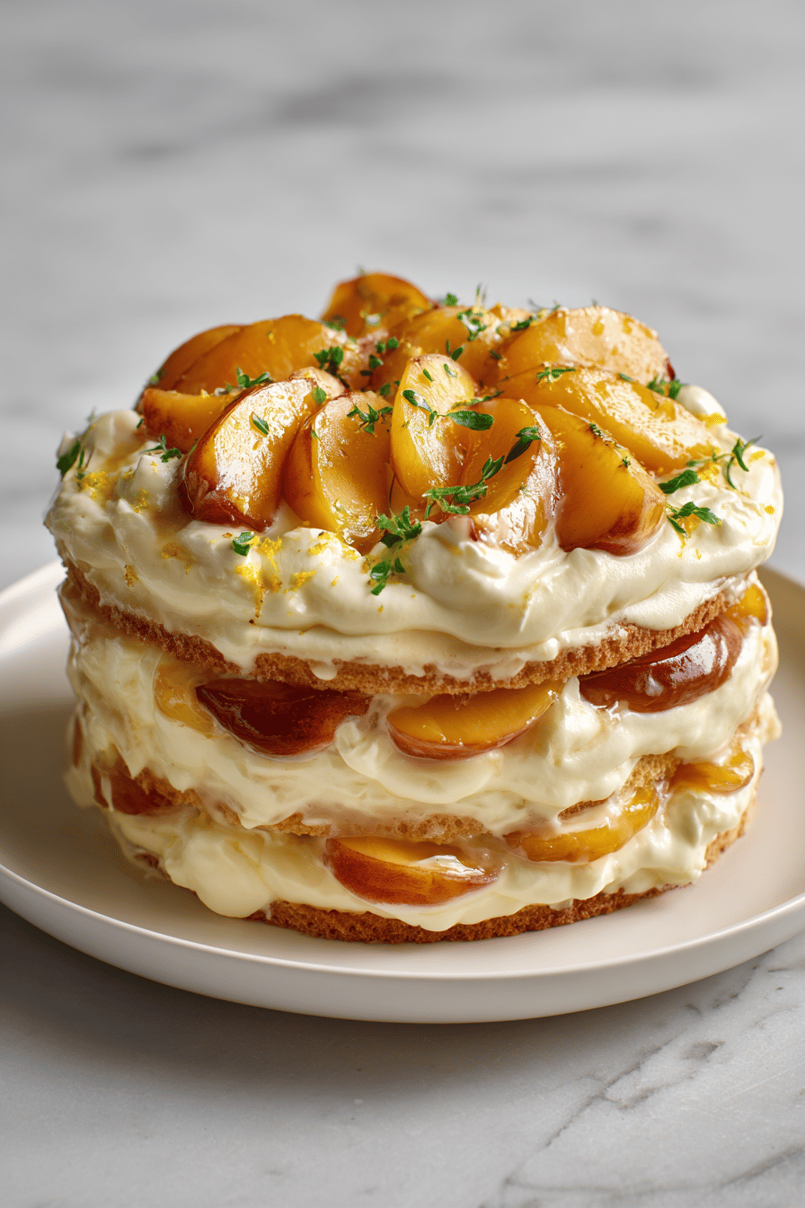 - Top with fresh peach and apricot slices for a burst of freshness. Add a sprinkle of finely chopped mint or a few toasted almond slivers (optional swap if nut allergy allows). Dessert should feel light yet rich, showcasing natural fruit aroma and citrus brightness.