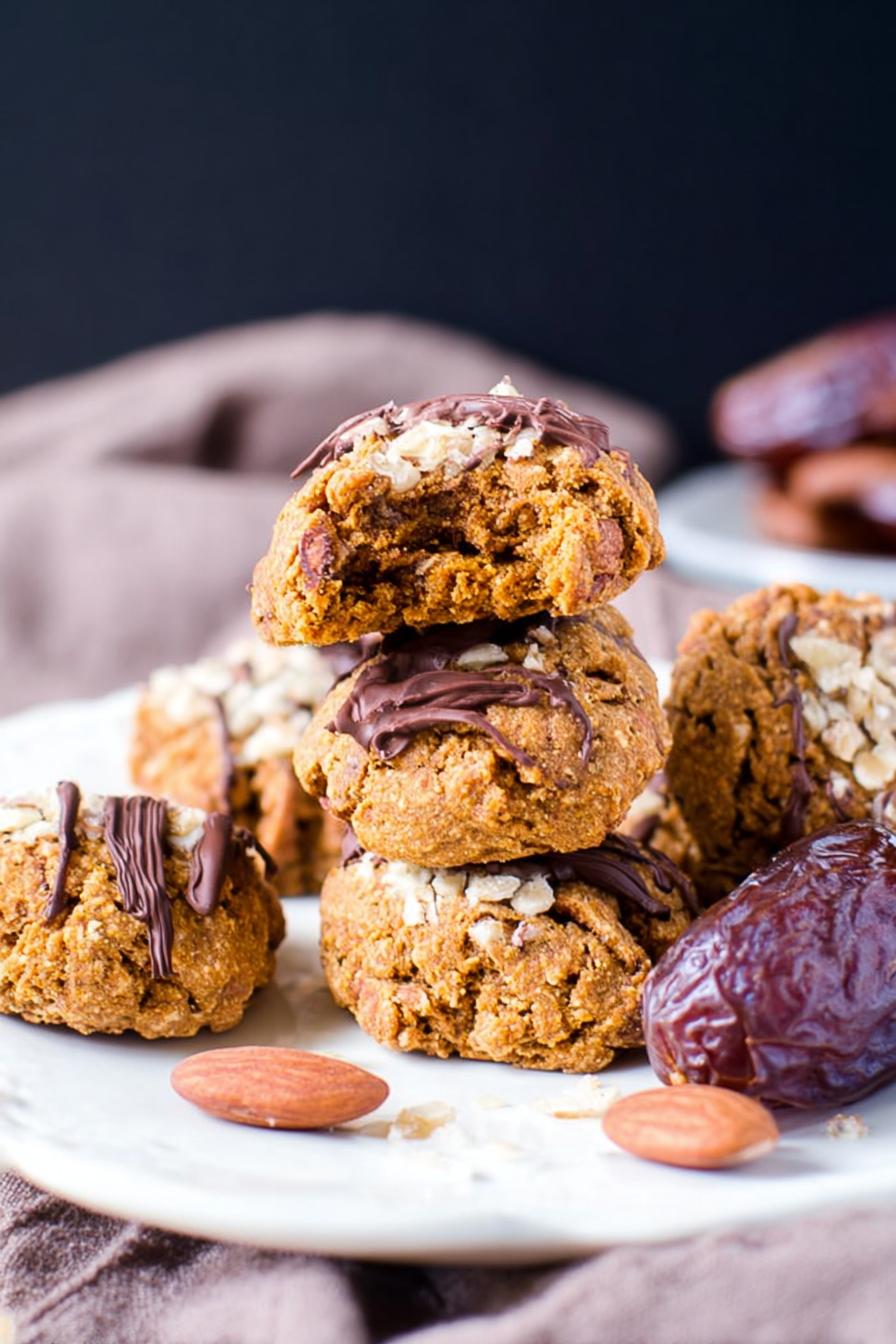 Swapped maple syrup for honey. Honey pads moisture and adds natural sweetness with less stickiness. Greek yogurt replaces coconut oil in dough for richness and slight tang, balancing pumpkin taste. Desiccated coconut swapped from shredded for finer texture—no stringy fibers, but still body. Dark chocolate, not milk, for less sweetness and stronger cocoa notes. Coconut oil pairs with chocolate for glossy drizzle; skip if allergic—use butter or neutral oil instead. Pecans chopped coarsely give crunch, but avoid grinding to powder—textures matter here. Oats act as binder and filler but pulse only enough to keep some chewiness. Sea salt is key; don’t forget it—it pulls flavor together and tames sweetness. Pumpkin pie spice mix over cinnamon alone brings complexity—nutmeg, cloves, ginger in background. Prep all ingredients first. Cookies hold shape better when ingredients are cold and measured precisely.