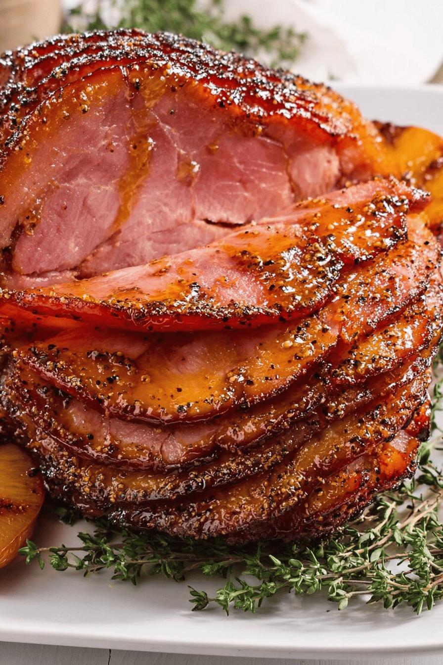 Slow-roasted ham with a bright Riesling peach glaze featuring apricot preserves and fresh rosemary. Reduced aromatic white wine forms the base, thickened with sugar and mustard for balance. Brushed repeatedly, the glaze deepens color and flavor while basting. Covered mid-roast to preserve moisture yet still brown crust forms. Rested before slicing to lock in juices. Substitutions and timing tips included for reliable results in any home kitchen.