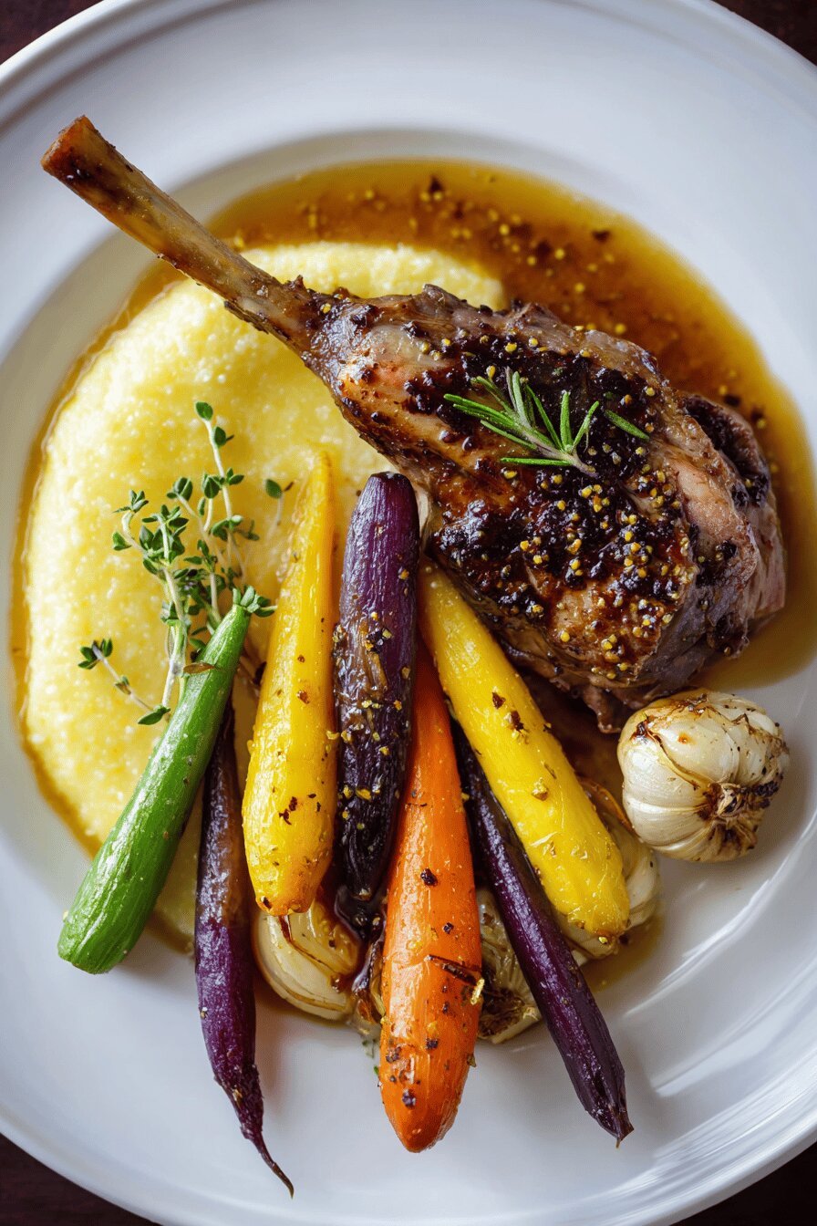Carrots—picked multicolored for a subtle earthiness and visual pop over plain yellow. Have extras; they shrink more than you think. Garlic served whole keeps mellow, softens with roasting, no prep needed. Rosemary and bay leaf easy to swap for thyme or sage if unavailable. Buckwheat honey has a strong, bittersweet note that plays beautifully against lamb’s richness. If you only have clover honey, add a pinch of blackstrap molasses or maple syrup for depth. Balsamic vinegar gives acidity and slight sweetness; use a good-quality aged version. Lamb—partial boning easy to handle, but a tied whole works too; temp is king. Chicken broth for liquid keeps pan wet and flavorful. Butter for sauce can be swapped for olive oil to keep dairy away. Smoked paprika boosts warmth—omit if you want traditional flavor, add a pinch of cayenne instead for heat. Keep salt and pepper ready, seasoning made in layers not one pass.
