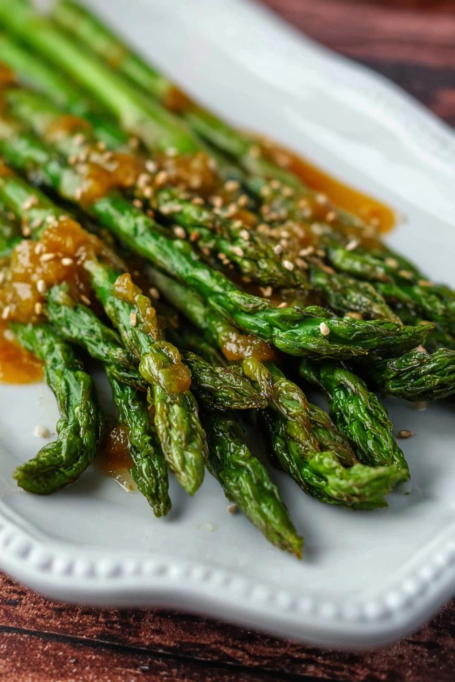 Oven-charred asparagus tossed in a sticky miso-ginger glaze with toasted sesame and lime zest. Uses broccolini instead of asparagus for a twist. Garlic swapped for fresh ginger. Salt swapped with smoked paprika powder. Slightly longer roast for deeper caramelization. Quick, no-fuss steps emphasizing sensory clues and flipping technique. Notes on common oven pitfalls, how to prevent limp spears, and what to do if glaze burns. Easy substitutions for miso and citrus. Crunchy sesame seeds toasted separately for max aroma. Quick ratio adjustments for smaller batches.