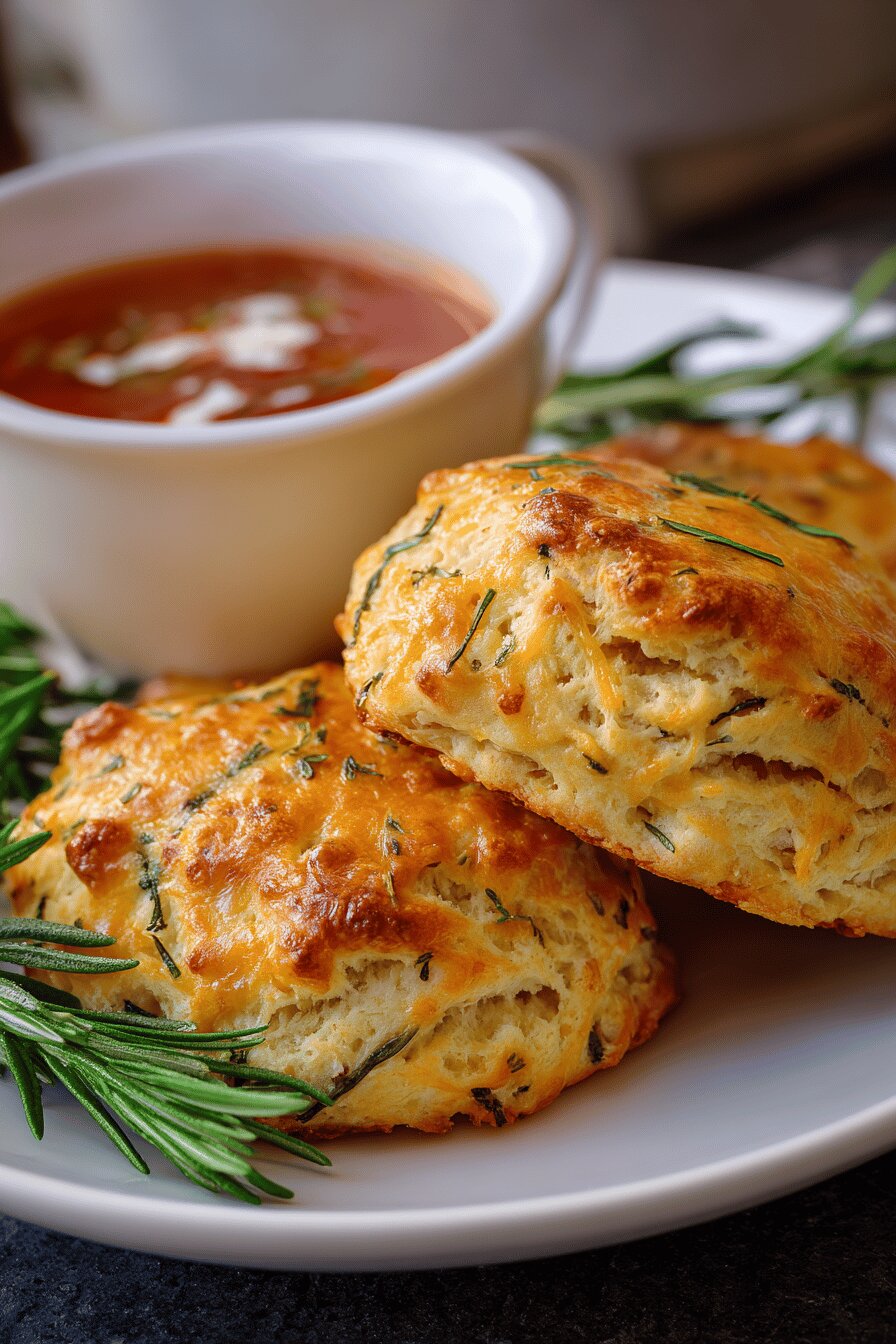Flour reduction avoids overly dense crumb. Baking soda + buttermilk react instantly, better rise and subtle tang. Butter must stay cold until mixed to create steam pockets in oven; this forms flaky layers. Cheese adds salt and moisture; herbs boost flavor. If no buttermilk, mix 160 ml milk with 1 tbsp vinegar, let sit 5 mins. Herbs replaceable—thyme, sage, or even dill. For dairy-free, sub cold coconut oil for butter, almond milk + lemon for buttermilk. Cake flour could also replace some all-purpose for lighter texture but handle dough delicately. Timing of rests lets gluten settle, prevents shrinking during baking.