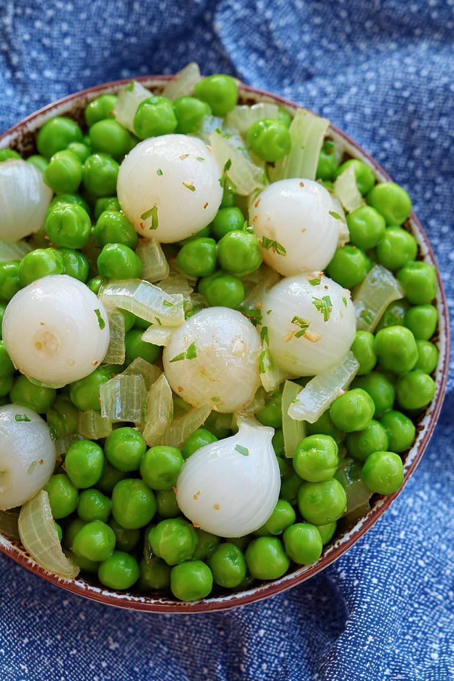 - Serve immediately to retain warmth and texture. Peas should be glossy, onions shiny and tender.