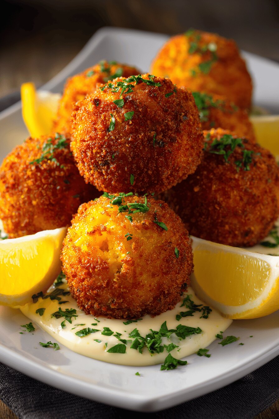 Frozen risotto with shrimp works best when fully thawed and refrigerated cold before shaping. Risotto’s moisture level impacts crumb adhesion; too wet means crumb loss or oily finished bites. Parsley swaps for basil for bright, grassy notes; fresh herbs dry out faster so chop finely and add to flour step. Cheddar instead of mozzarella changes mouthfeel—sharper, crumblier, melts differently but adds depth. Flour amount adjusted slightly higher for ample coating surface area. Panko quantity increased to create a substantial crust that holds through frying. Oil selection matters: neutral vegetable or canola oil avoids flavor interference. Substitution options: Asiago or fontina for cheese; fresh breadcrumbs for panko if unavailable but watch crispness.