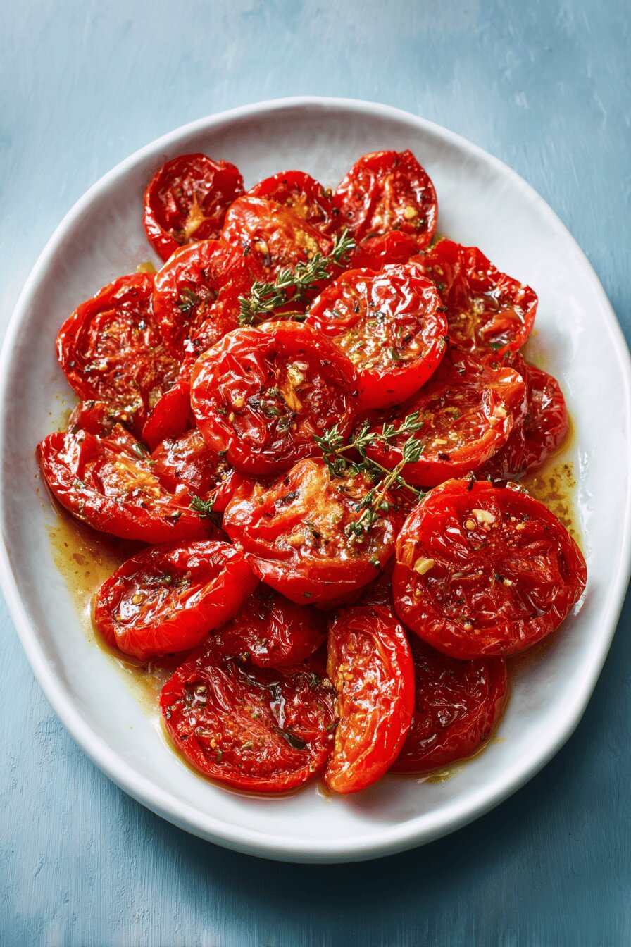Canned tomatoes don’t have to be soggy, bland blobs you throw into sauce to mask their flaws. Slow roasting turns them into jewel-toned bites bursting with concentrated sweetness and just a hint of caramel. No frantic cooking, no high heat that blasts moisture and breaks skins. Time and low temper. That’s the secret. You’ll spot it in the shrinking skins, slight golden spots appearing–signals you’re on the right track. The smell, too, tells you the truth. Confiting means partial dehydration and flavor concentration in gentle oil bath but done in oven, you get dry caramel notes rather than greasy softness. The garlic slices and thyme wedged between add layers. Simple tweak: walnut oil instead of olive for earthier shorter chain fatty acids and subtle nuttiness, little-known powerhouse pairing with tomato acidity. Hold the juice for soups or risotto; skinny tomatoes bake sweet, but the leftover liquor still packs punch, not to waste it. Mind the residual water; blotting payoffs dividends in texture and flavors that cling. Ideas expand: thread into sandwiches, toss with cold beans, scatter on cheesy croquettes. Versatile, forgiving technique useful all year, practical when fresh fruit fades. Kitchen-tested, zero guesswork.